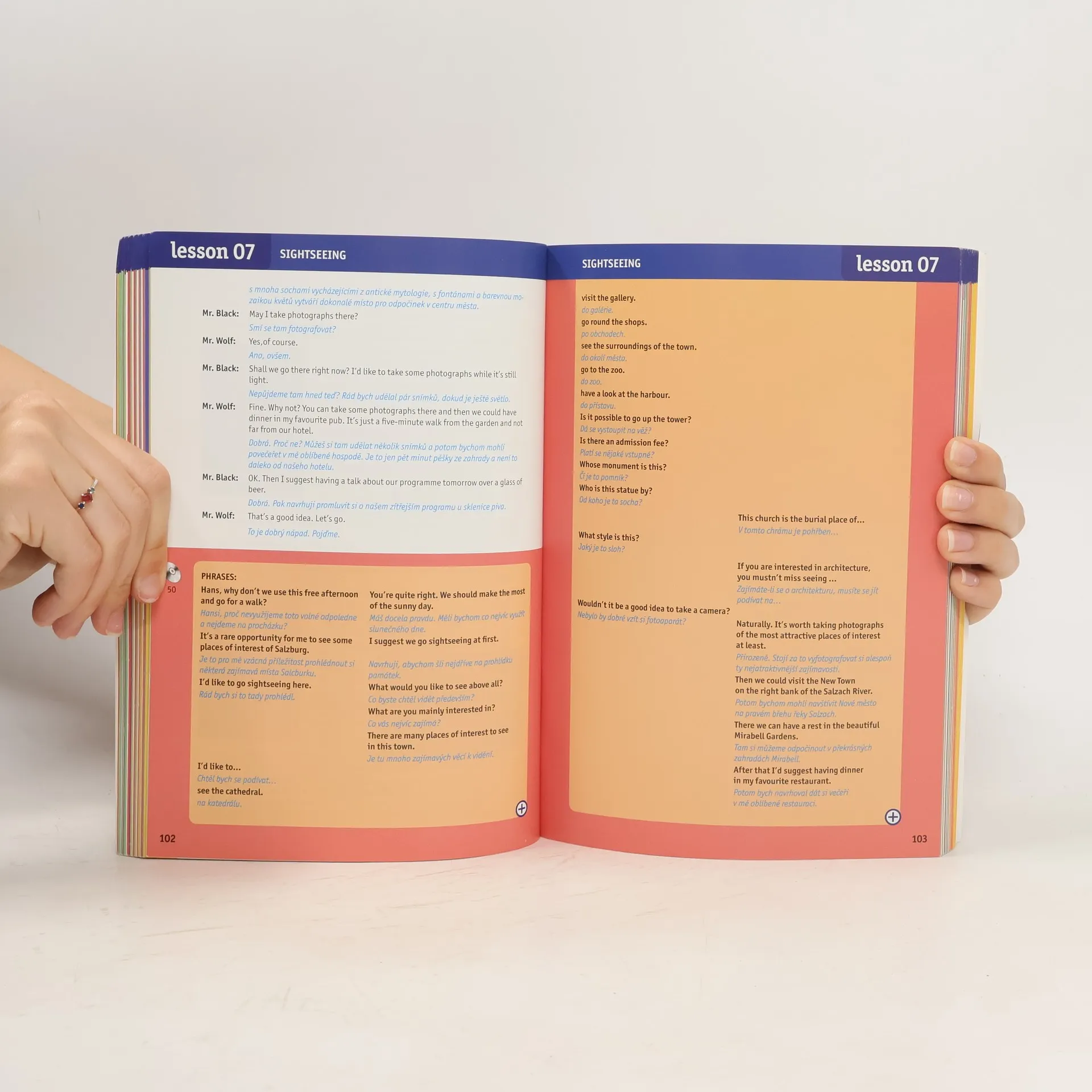 Učebnice je určena středně pokročilým studentům, pro konverzační kurzy i pro samouky. Obsahuje řadu slovních obratů a frází zaměřených na cestovní ruch, ale i další oblasti života. Na začátku lekce najdete tématické rozhovory s českým překladem. Následuje souhrn frází a slovíček a vysvětlení gramatických jevů. Na CD najdete namluvené úvodní rozhovory, ale také fráze i slovíčka včetně vzorových námětů (TOPICS).