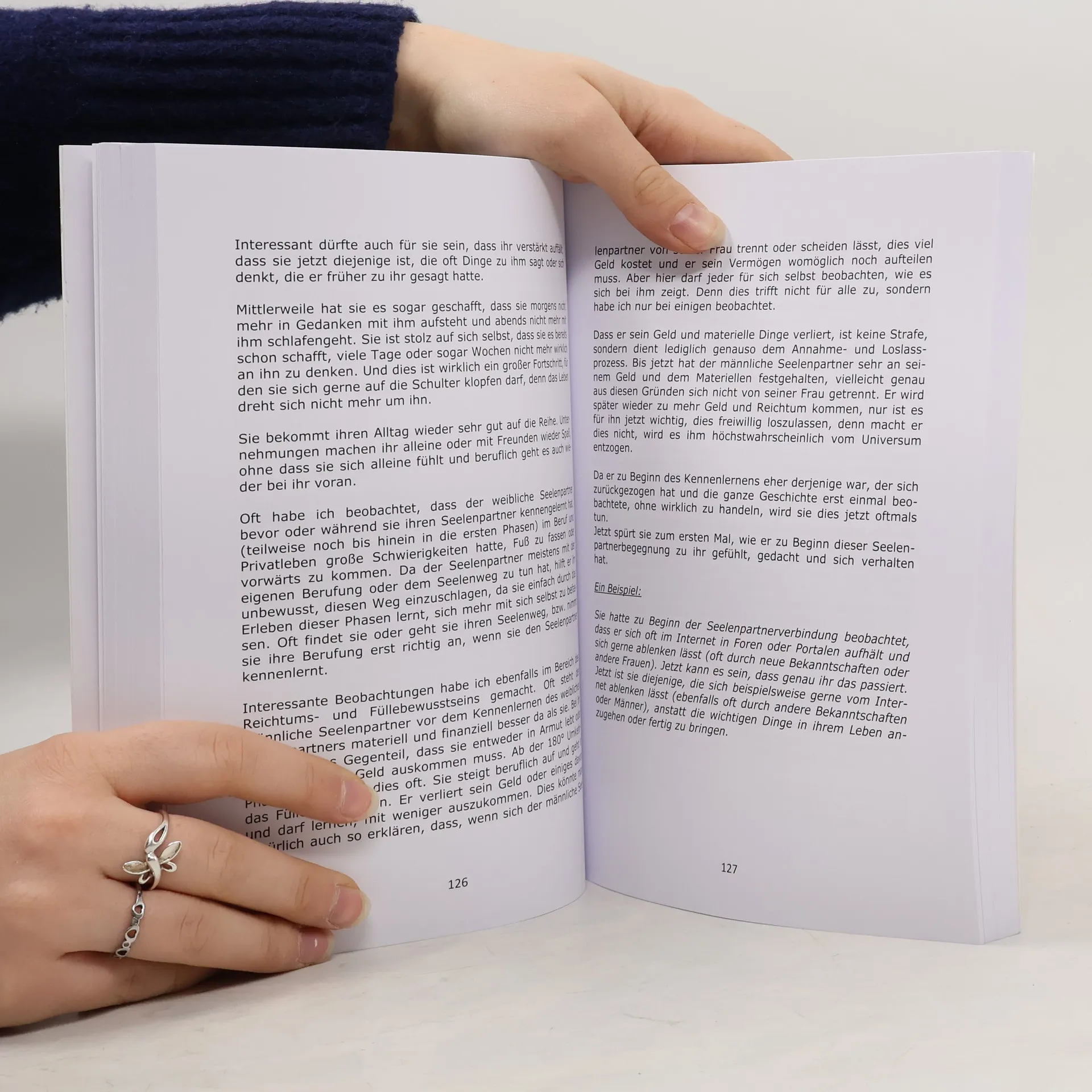 Die erste Begegnung mit dem Seelenpartner ist einzigartig und von großer Liebe geprägt. Oft zieht sich der männliche Seelenpartner zurück, was zu Verwirrung und Leid führt. Der erste Teil des Buches erklärt, warum dies geschieht, die damit verbundenen Qualen und die Phasen, die man in dieser speziellen Verbindung durchläuft.