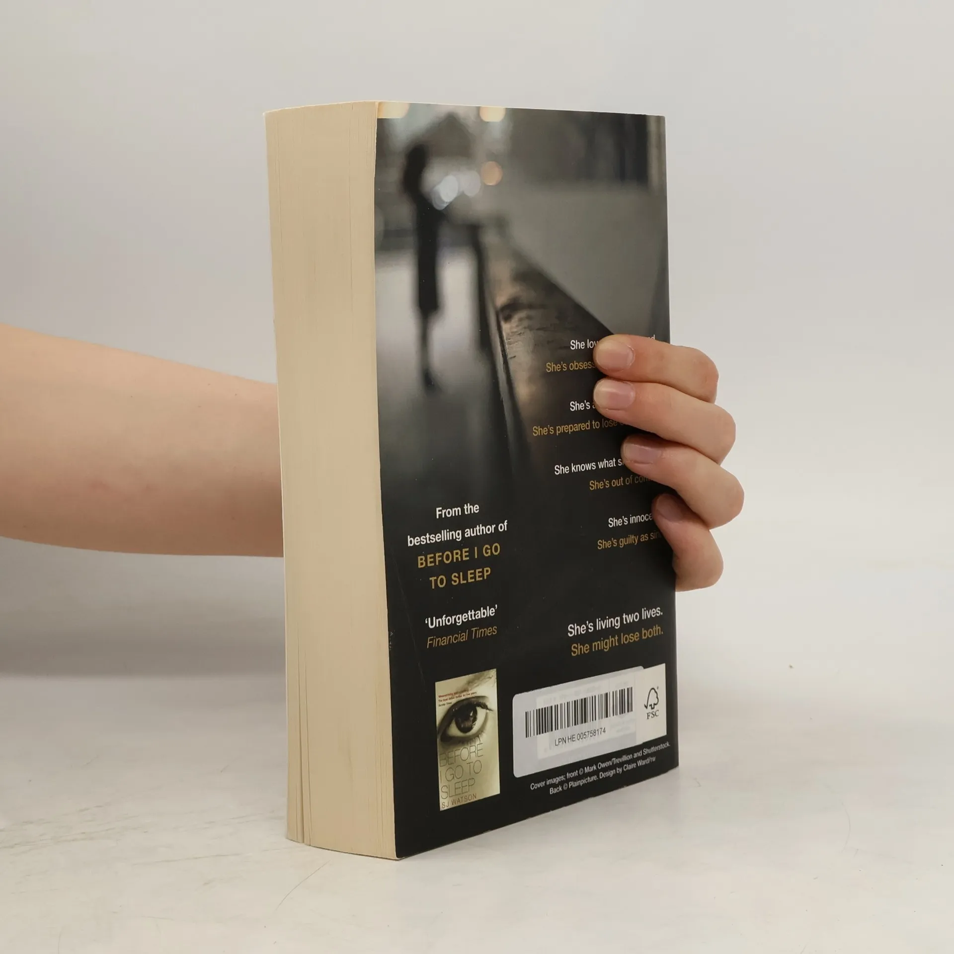 The sensational new psychological thriller from the bestselling author of Before I Go To Sleep. She loves her husband. She's obsessed by a stranger. She's a devoted mother. She's prepared to lose everything. She knows what she's doing. She's out of control. She's innocent. She's guilty as sin. She's living two lives. She might lose both . . .