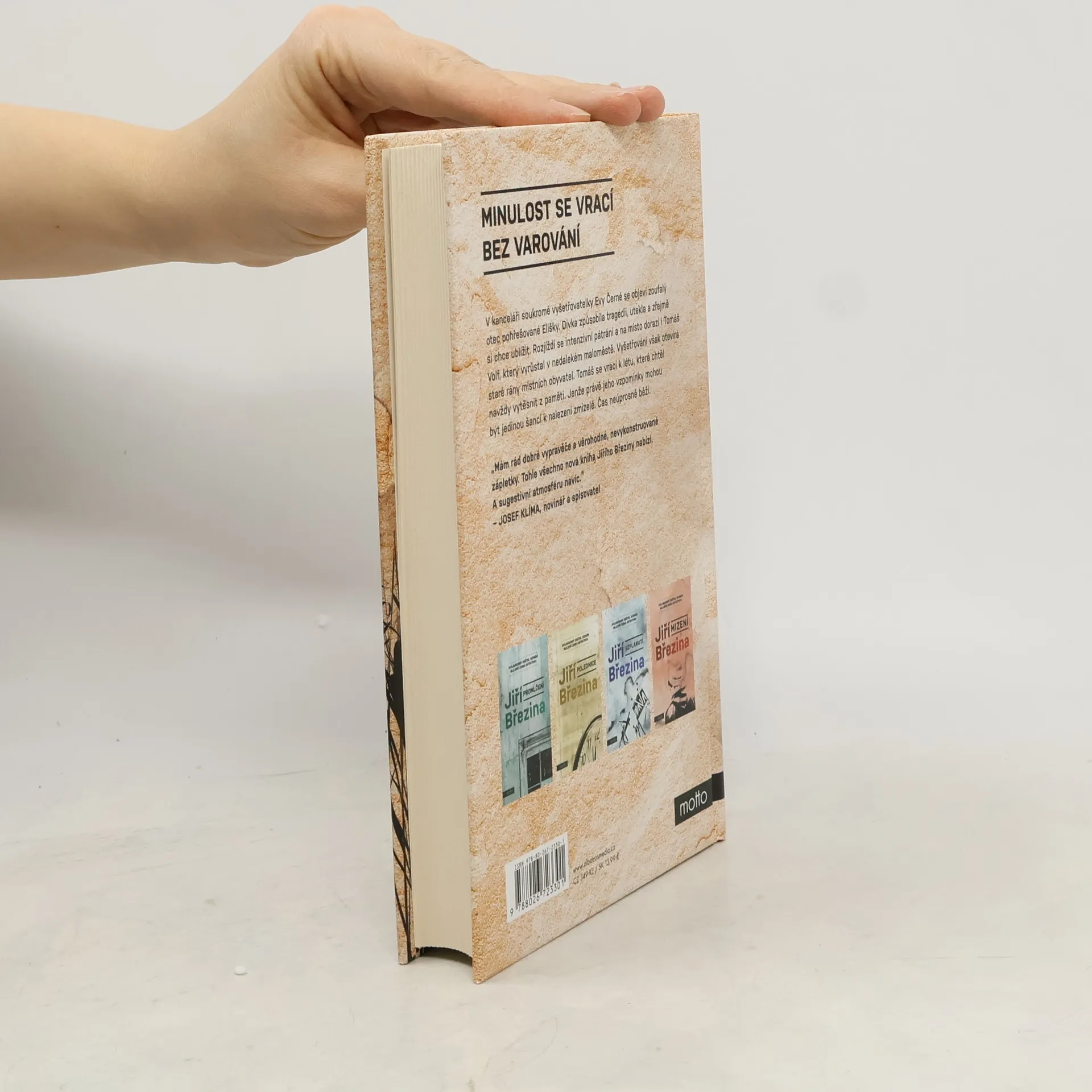 Minulost se vrací bez varování. Pátý případ Tomáše Volfa. V kanceláři soukromé vyšetřovatelky Evy Černé se objeví zoufalý otec pohřešované Elišky. Dívka způsobila tragédii, utekla a zřejmě si chce ublížit. Rozjíždí se intenzivní pátrání a na místo dorazí i Tomáš Volf, který vyrůstal v nedalekém maloměstě. Vyšetřování však otevírá staré rány místních obyvatel. Tomáš se vrací k létu, které chtěl navždy vytěsnit z paměti. Jenže právě jeho vzpomínky mohou být jedinou šancí k nalezení zmizelé. Čas neúprosně běží.Dvojnásobný držitel ceny za nejlepší českou detektivku Jiří Březina se v pátém případu Tomáše Volfa vydává do minulosti, která souvisí se současným případem nejen místem činu. Autor odhaluje dospívání hlavního hrdiny, které ovlivnilo jeho pohled na svět a přimělo ho k zásadnímu rozhodnutí.Tomáš Volf se opět setkává s Evou Černou, kterou přivede pátrání po pohřešované Elišce do jeho rodiště. Dívka způsobila tragédii, utekla a vše nasvědčuje tomu, že si chce ublížit. Vyšetřování však otevírá staré rány místních obyvatel. Tomáš se vrací k létu, které chtěl navždy vytěsnit z paměti. Jenže právě jeho vzpomínky mohou být jedinou šancí k nalezení zmizelé. Čas neúprosně běží a současnost až nepříjemně připomíná patnáct let staré události.