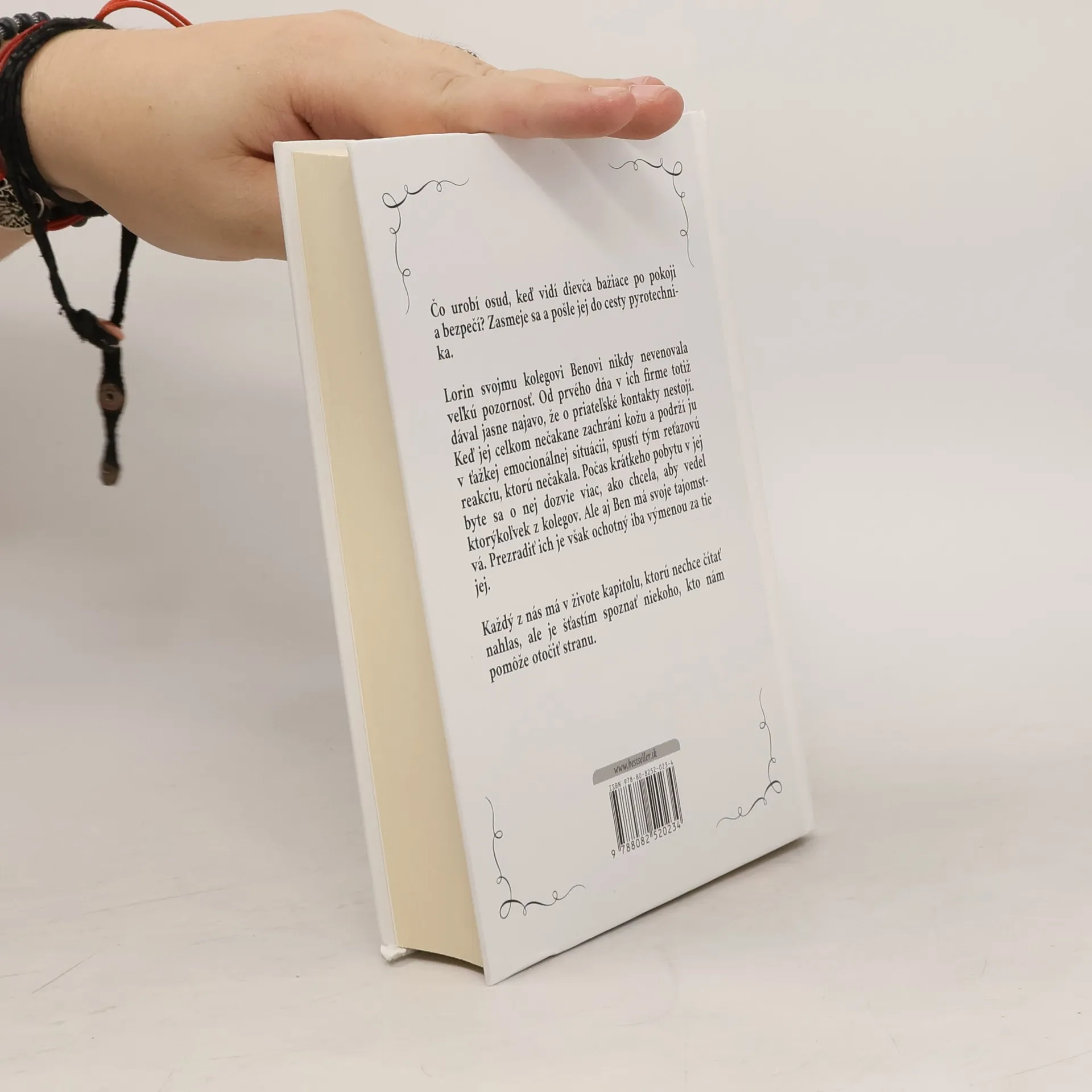 Čo urobí osud, keď vidí dievča bažiace po pokoji a bezpečí? Zasmeje sa a pošle jej do cesty pyrotechnika. Lorin svojmu kolegovi Benovi nikdy nevenovala veľkú pozornosť. Od prvého dňa v ich firme totiž dával jasne najavo, že o priateľské kontakty nestojí. Keď jej celkom nečakane zachráni kožu a podrží ju v ťažkej emocionálnej situácii, spustí tým reťazovú reakciu, ktorú nečakala. Počas krátkeho pobytu v jej byte sa o nej dozvie viac, ako chcela, aby vedel ktorýkoľvek z kolegov. Ale aj Ben má svoje tajomstvá. Prezradiť ich je však ochotný iba výmenou za tie jej. Každý z nás má v živote kapitolu, ktorú nechce čítať nahlas, ale je šťastím spoznať niekoho, kto nám pomôže otočiť stranu.