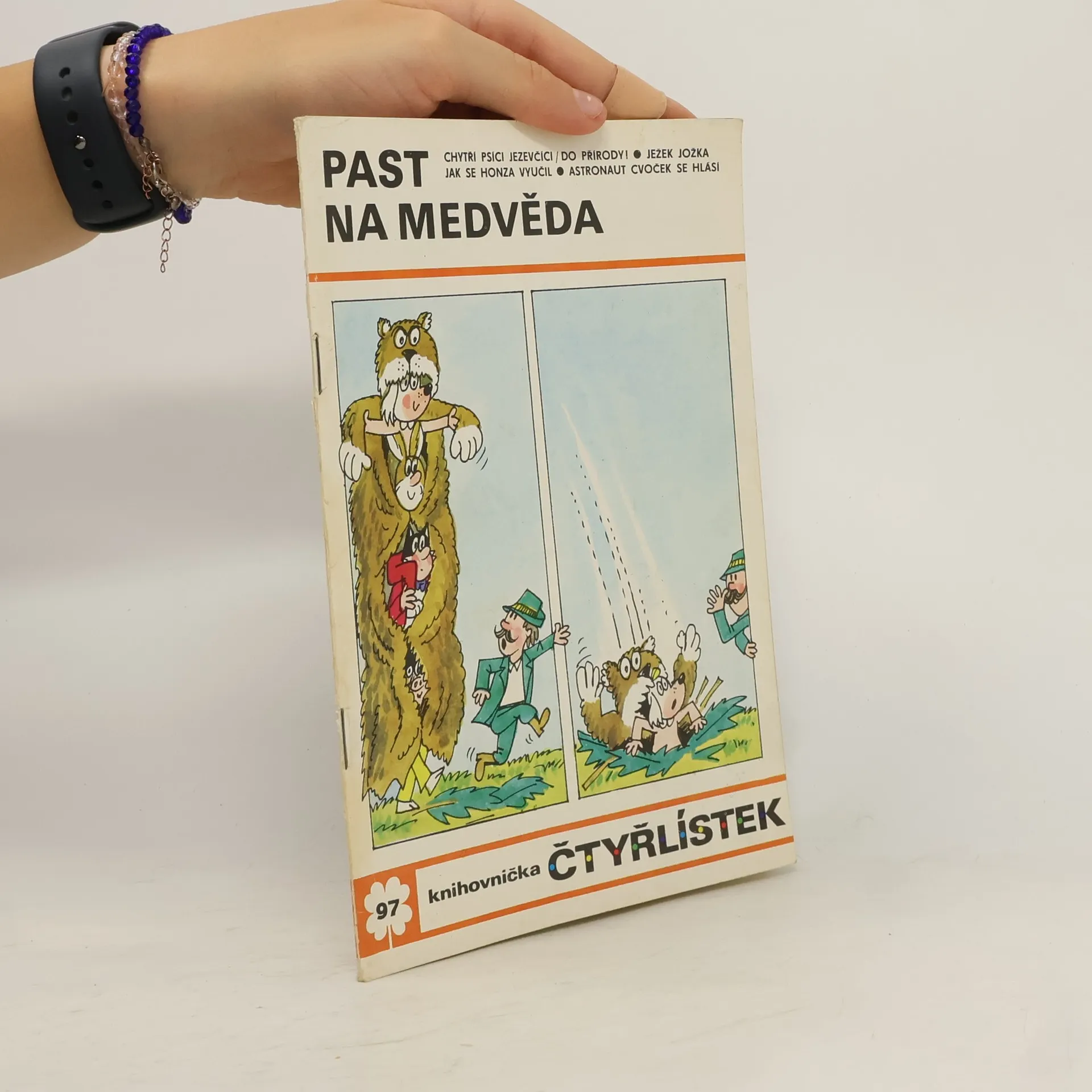 97. díl série. Čtyřlístek - Past na medvěda - Ljuba Štíplová, Jaroslav Němeček. Chytří psíci jezevčíci - Do přírody - Martin Šafránek, Miloš Nesvadba. Jak se Honza vyučil - Angelika Hanauerová, Věra Faltová. Ježek Jožka - Ladislav Čapek. Astronaut Cvoček se hlásí - Planeta robotů -Helena Sýkorová, Josef Lamka.