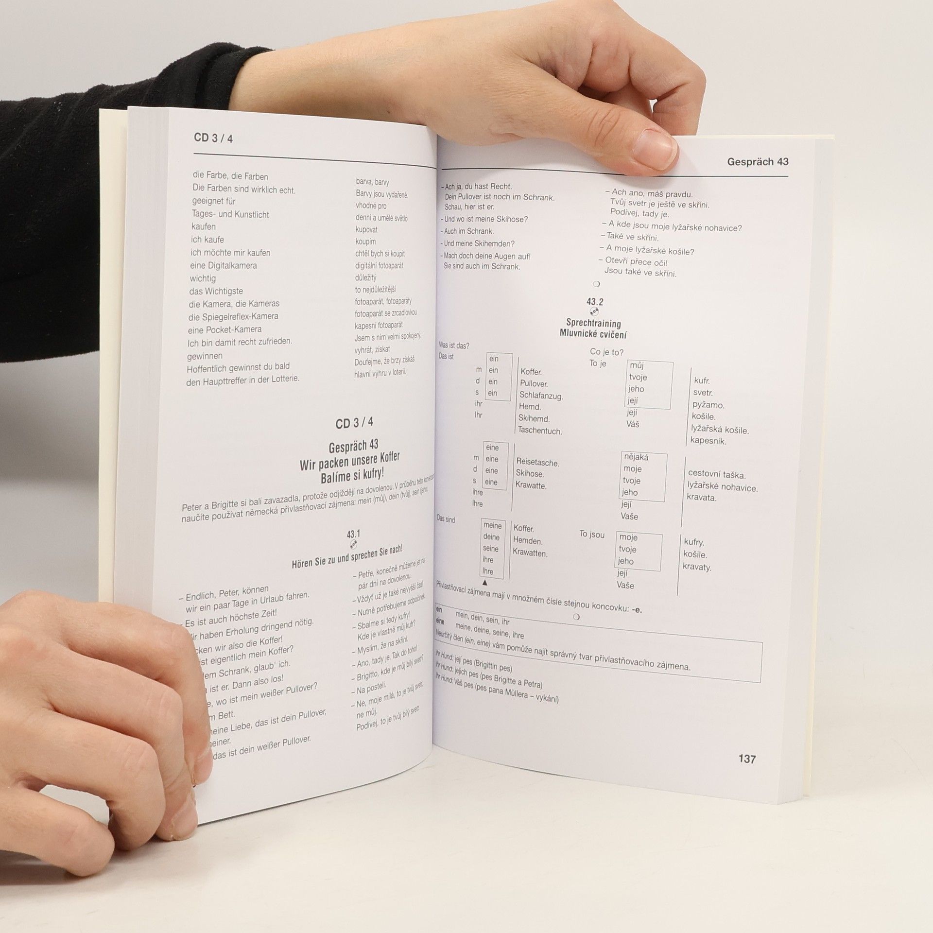 Rozhovory nahráli rodilí mluvčí. Učebnice obsahuje cvičení i se správnými řešeními, poslechová cvičení a nahrávky her a také vysvětlení základních gramatických jevů. Souhrnný přehled gramatiky najdete v přiložené tabulce. Vyhledávání jednotlivých nahrávek je velmi jednoduché. Učebnice nabízí nejen psanou verzi všech rozhovorů a jejich překlady do češtiny, ale také celou řadu různých poslechových cvičení, vysvětlení důležitých gramatických jevů a příkladů jejich správného používání.
