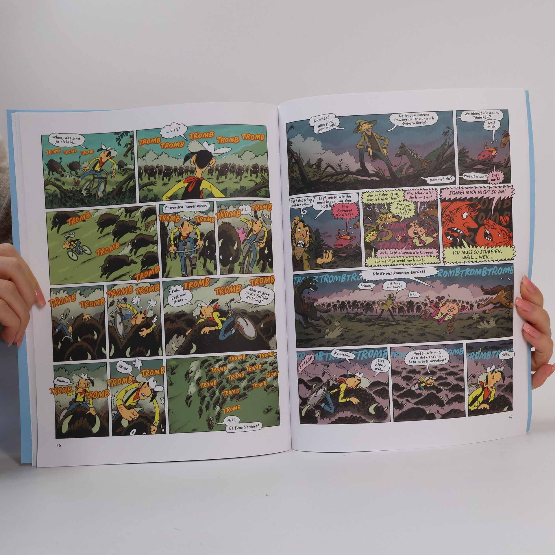 In "Mit Lucky Luke sattelt um" findet sich Lucky Luke unerwartet im Sattel eines Fahrrads wieder und muss den nordamerikanischen Kontinent durchqueren. Der Berliner Comiczeichner Mawil bringt mit dieser humorvollen Hommage an die Comic-Ikone frischen Wind und viel Witz in die Geschichte.