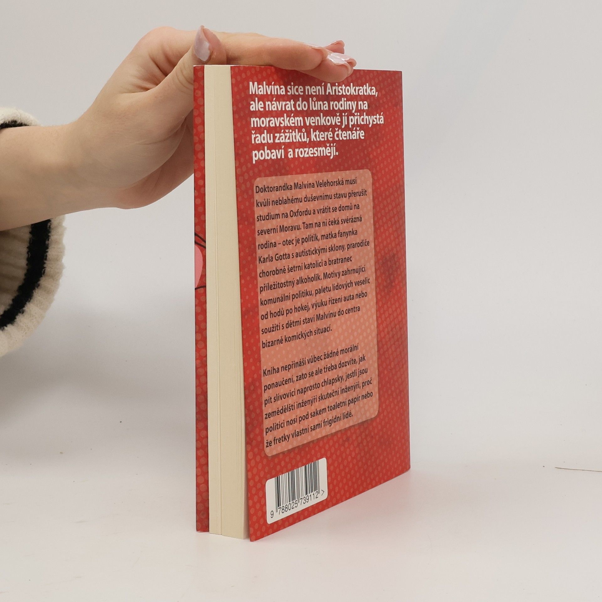Doktorandka Malvína Velehorská musí kvůli neblahému duševnímu stavu přerušit studium v Oxfordu a vrátit se domů na severní Moravu. Tam na ni čeká svérázná rodina – otec je politik, matka fanynka Karla Gotta s autistickými sklony, prarodiče chorobně šetrní katolíci a bratranec příležitostný alkoholik. Motivy zahrnující komunální politiku, paletu lidových veselic od hodů po hokej, výuku řízení auta nebo soužití s dětmi staví Malvínu do centra bizarně komických situací. Jako sociální psycholog vidí ve své rodině perspektivní půdu pro antropologickou studii. Role moravského vesničana už jí ovšem tak dobře nejde.