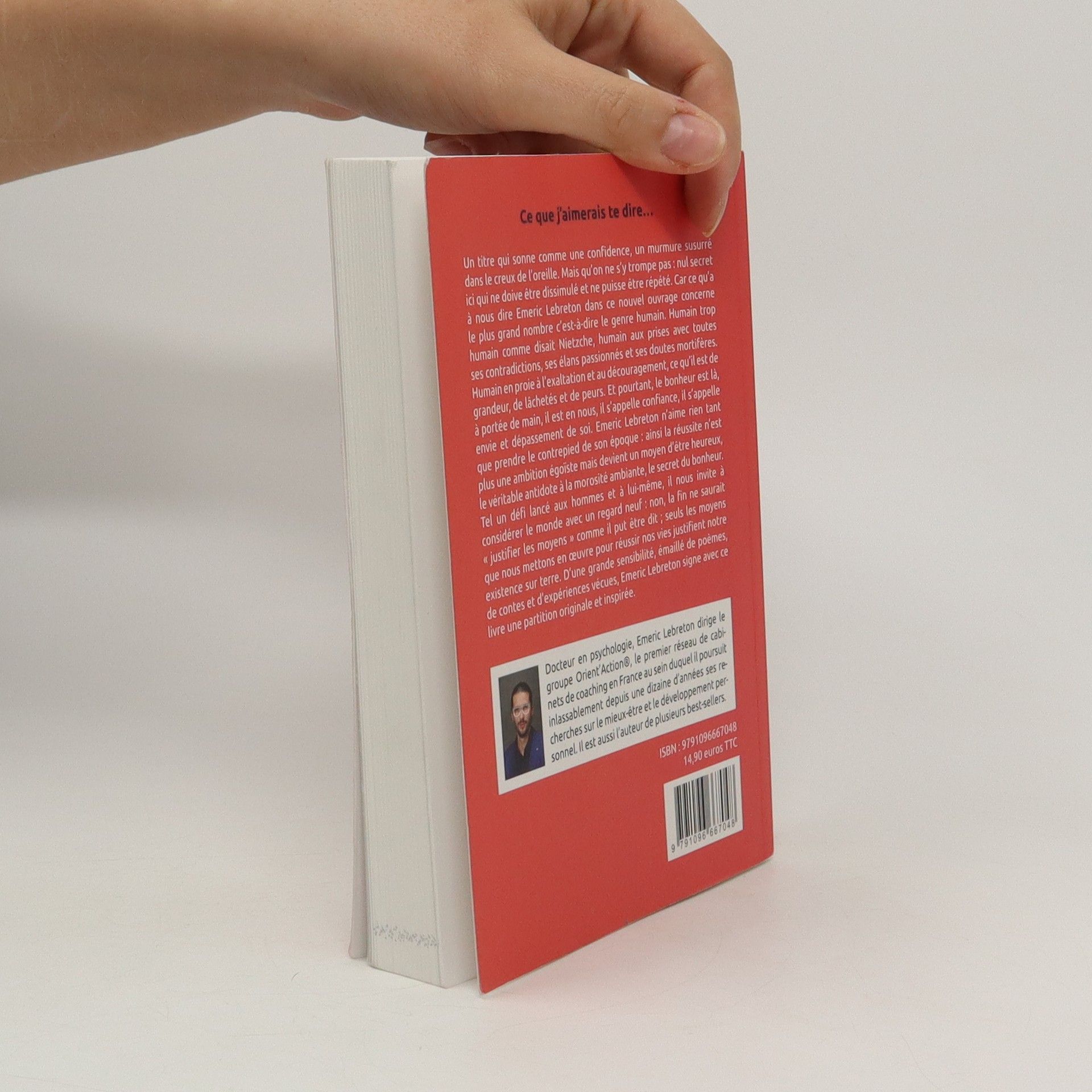 Il n’est pas toujours facile de savoir comment s’y prendre lorsqu’un proche subit des difficultés ou des épreuves dans son quotidien. Alors parfois, il est plus aisé de ne rien dire et de simplement montrer que l’on est présent pour lui. Ce petit livre poursuit exactement ce but.L’auteur propose de réfléchir sur la recherche du bonheur, la colère, le deuil, la vieillesse ou encore la malchance. En s’appuyant sur des histoires, des poèmes et des citations, il souhaite célébrer les attitudes positives, humaines et bienveillantes. Il invite à considérer le monde avec un regard neuf,car il est possible de trouver les moyens de rebondir, d’aller mieux pour, au final, réussir sa vie.Ce livre – comme une confidence, un murmure susurré dans le creux de l’oreille – offre un grand réconfort à glisser entre toutes les mains.Docteur en psychologie, Emeric Lebreton dirige le groupe ORIENTACTION®,le premier réseau de cabinets de coaching en France au sein duquel il poursuitinlassablement depuis une dizaine d’années ses recherches sur le mieux-êtreet le développement personnel. Il est aussi l’auteur de plusieurs ouvrages.