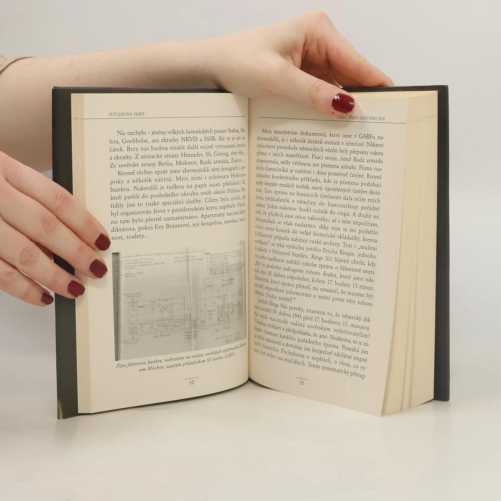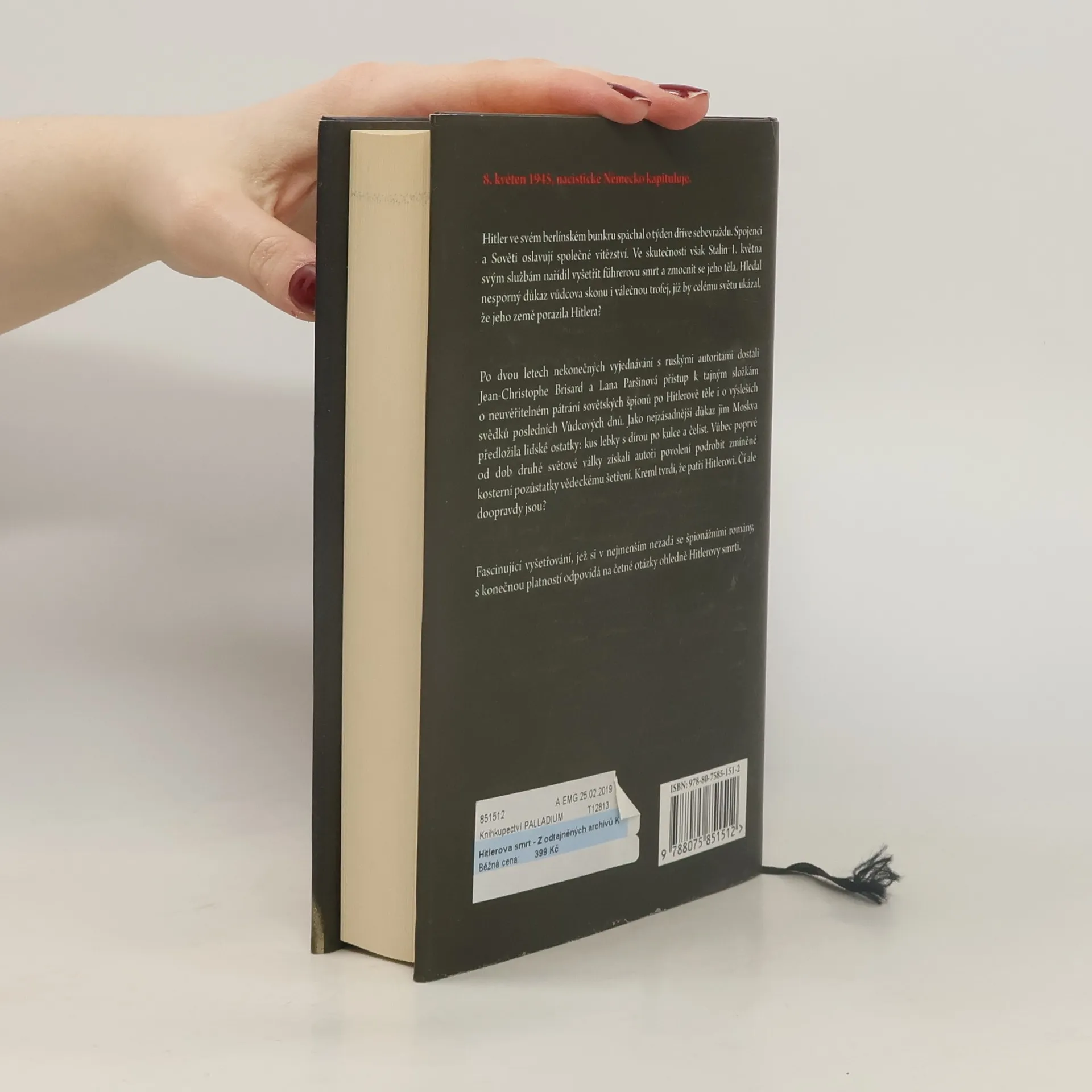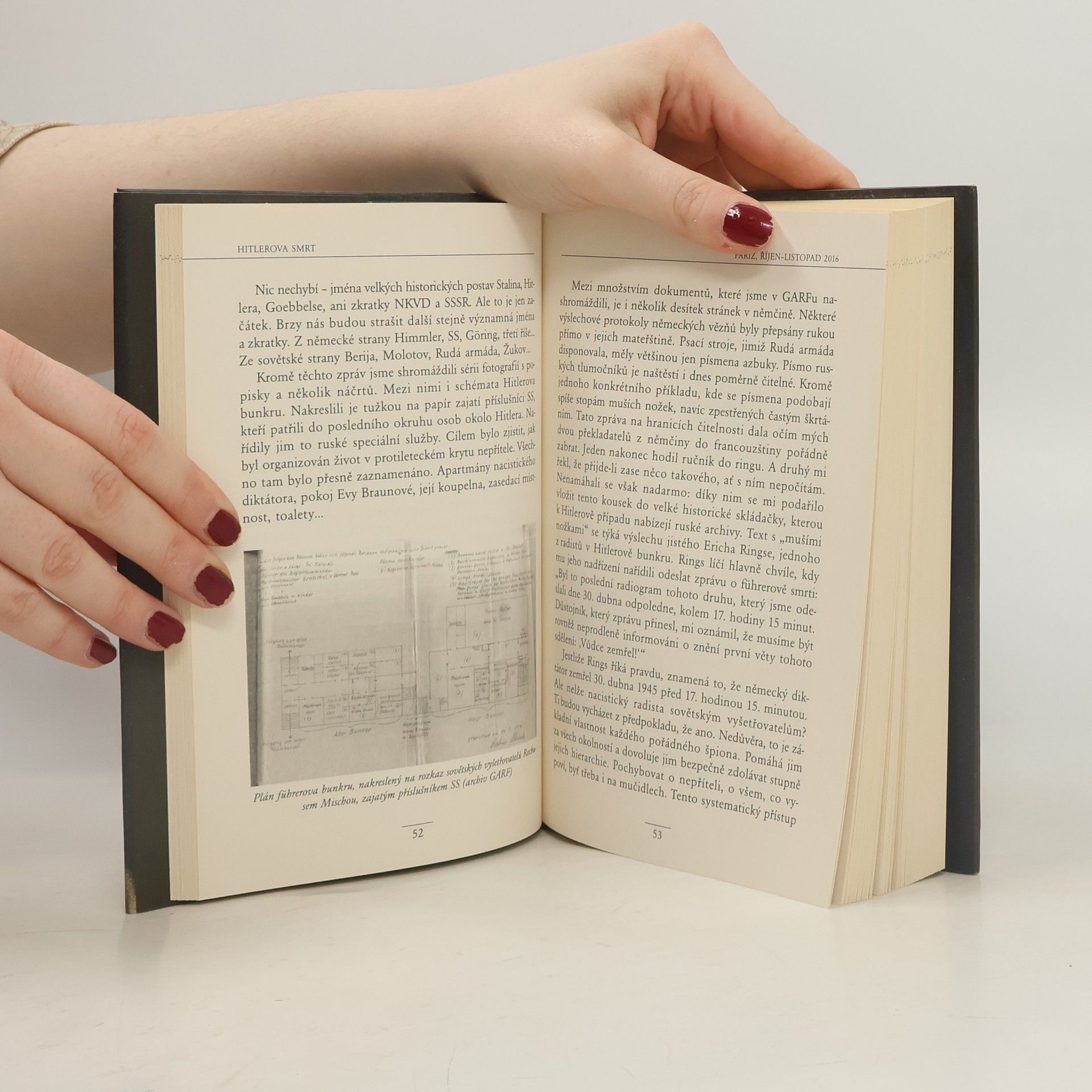 Francouzský novinář a rusko-americká žurnalistka odkrývají poslední závoje zahalující tajemství smrti vůdce tzv. třetí říše. Ve svém díle shrnují nejnovější bádání, opírající se o archivy tajné služby KGB, které byly ještě nedávno zcela nepřístupné. Téměř detektivní pátrání je zavádí do Státního archivu Ruské federace, kde zkoumají fyzické pozůstatky německého diktátora. Je fragment lebky, který zde leží, skutečně Hitlerův? Čtenář se seznamuje nejen s novátorskými výsledky jejich bádání, ale také s rekonstrukcí posledních dnů v Hitlerově bunkru na konci druhé světové války.