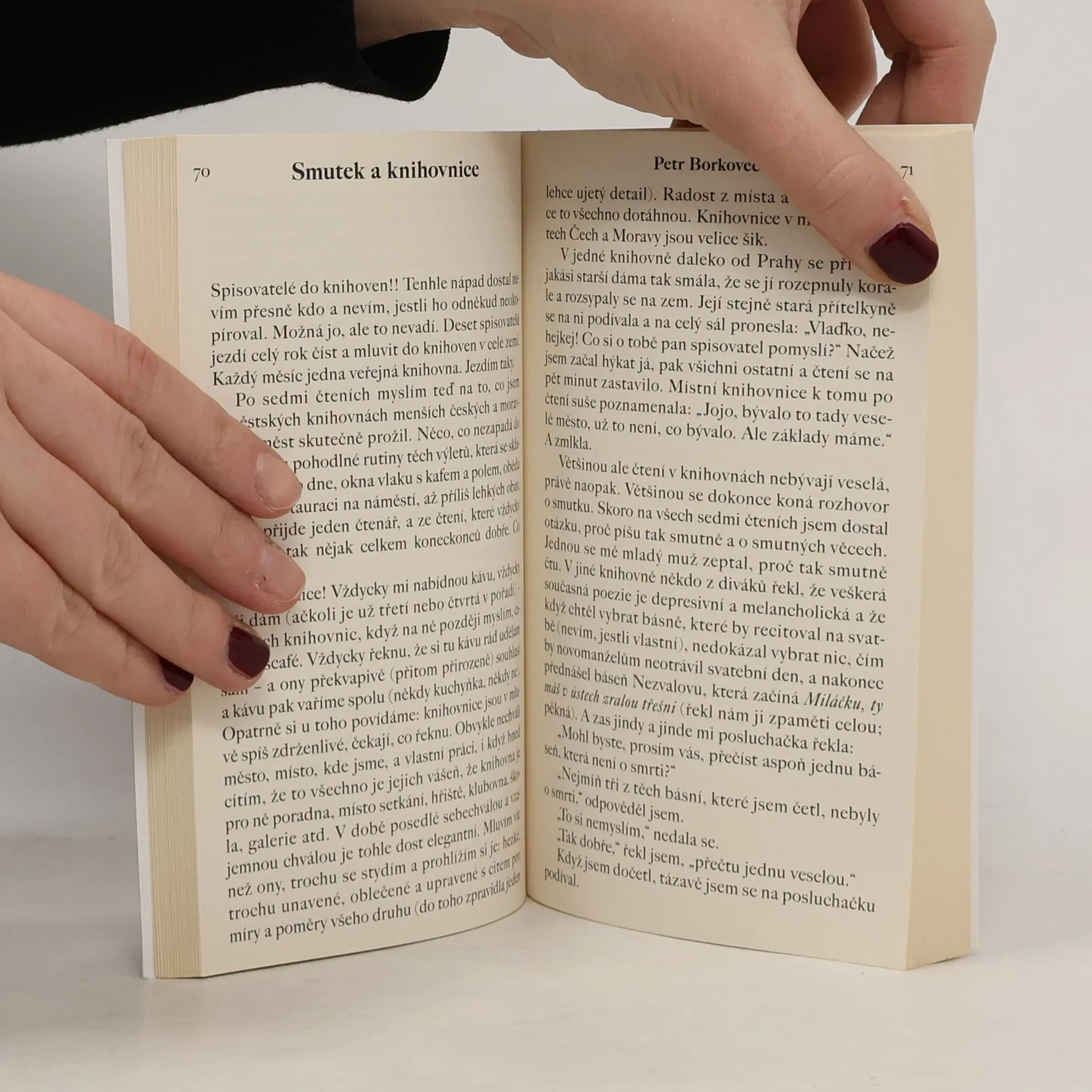 „Máte rád Bukowského? Jste víc syn nebo víc otec? Neutlačuje jedna poloha tu druhou? Kterou preferujete? Byl jste někdy na slam poetry? Měl jste šťastné dětství? Filozofická otázka – co to vlastně je poezie, co je její smysl? Čtete své básně své ženě? Asi nejste zrovna revolucionář, ale zkusil byste nějaký osobní manifest? Cestujete? Máte rád Bukowského? Je pro vás matka inspirací? Jakým způsobem prosekáváte cestu mačetou slov skrz džungli chaosu k napajedlu skutečnosti? Máte nějaký koníček? Co byste dělal, kdybyste nepsal? Máte rád Bukowského?“ Otázky jsou jasné. Petr Borkovec (1970) se ve svých krátkých prozaických textech pokouší zodpovědět všechny najednou.