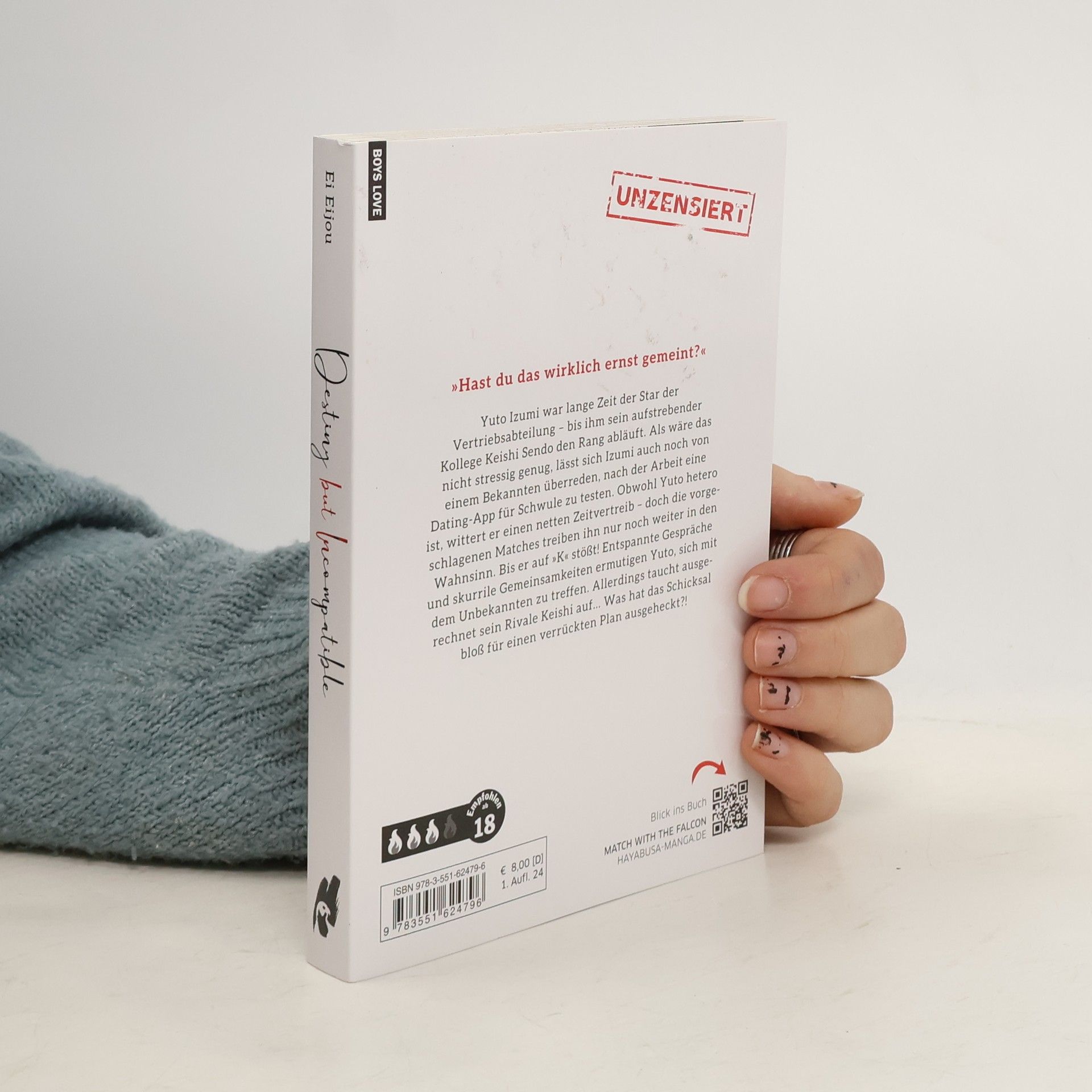 In "Destiny but Incompatible" kämpft Izumi Yuto mit beruflichen Rückschlägen, als er von Sendo Keishi verdrängt wird. Auf der Suche nach Liebe über eine Dating-App trifft er auf "K", doch das Schicksal hält Überraschungen bereit, als Sendo plötzlich auftaucht. Ein heißer Yaoi-Einzelband von Ei Eijou.