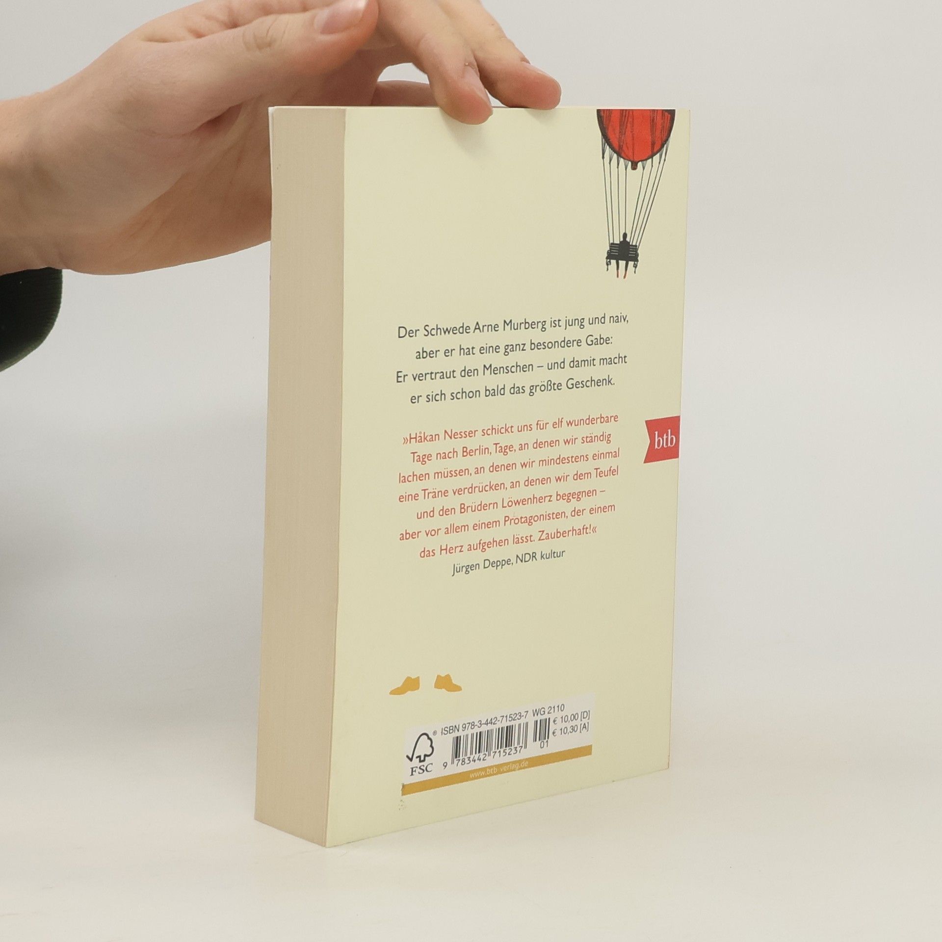 Einen Nobelpreis wird er wohl nicht bekommen. Arne Murberg ist von schlichterem Gemüt. Nach einem Badeunfall in der Kindheit hat er Schwierigkeiten, sich zu konzentrieren und komplexere Zusammenhänge zu erfassen. Aber Arne ist ein warmherziger, liebenswerter Mensch, der sich eine kindlich naive, offene Art bewahrt hat und voll Vertrauen auf das Leben blickt. Als sein Vater ihm auf dem Totenbett offenbart, dass seine Mutter nicht tot ist, wie Arne geglaubt hat, sondern in Berlin lebt, und ihm gleichzeitig den Auftrag gibt, sie dort aufzusuchen und ihr ein verschlossenes Kästchen zu übergeben, beginnt für ihn ein wundersames Abenteuer. Mit äußerst rudimentären Deutschkenntnissen und einem Paar strapazierfähiger gelber Schuhe macht Arne sich auf die Reise – und gerät schon bald in Schwierigkeiten. Doch ihm zur Seite stehen zwei Menschen, die der Himmel höchstpersönlich geschickt zu haben scheint: ein etwas wirrer Professor und eine kluge junge Frau im Rollstuhl. Wird Arne seiner Mutter begegnen? Wird er sein Glück finden in Berlin?