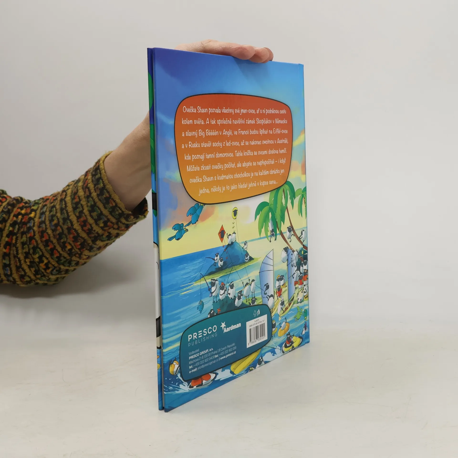 Oblíbená filmová a seriálová hrdinka Ovečka Shaun se vrací ve druhém díle neuvěřitelně zábavné trilogie pro nejmenší, tentokrát pod názvem Ovečka Shaun cestuje kolem světa. Jak titul knihy sám napovídá, s hlavní hrdinkou zažijí čtenáři velká cestovatelská dobrodružství a věřte, že s touto knížkou zapomenou děti i rodiče na nudu a opět si procvičí svůj bystrý zrak a postřeh. I nyní je hlavním úkolem dětí najít na každé dvojstraně tu jedinou Ovečku Shaun s kudrnatou chocholkou. Ovečka Shaun sice žije na poklidné farmě, ale je neustále v centru každé lumpárny, která ostatní ovečky vytrhne z poklidných dnů. Pod jejím vedením se všichni společně vydávají na cestu za velkým a neznámým dobrodružstvím. Výprava začíná v Německu na zámku, který ovečky prozkoumají křížem krážem, dále navštíví elegantní Paříž, kde si užijí starobylé památky a prohlídku Eiffelovky a budou pokračovat do Londýna. Dalšími zastávkami této zdařilé výpravy jsou orientální Egypt, divoká džungle, Nepál a nakonec daleká Austrálie. A jak se tam naše milé ovečky dostaly? Úplně náhodou, vlastně tam zabloudily. Potkaly klokany a domorodé ovce, takže byly vlastně náramně spokojené. Výlet to byl úspěšný a ovečky zažily opět spoustu zábavy.