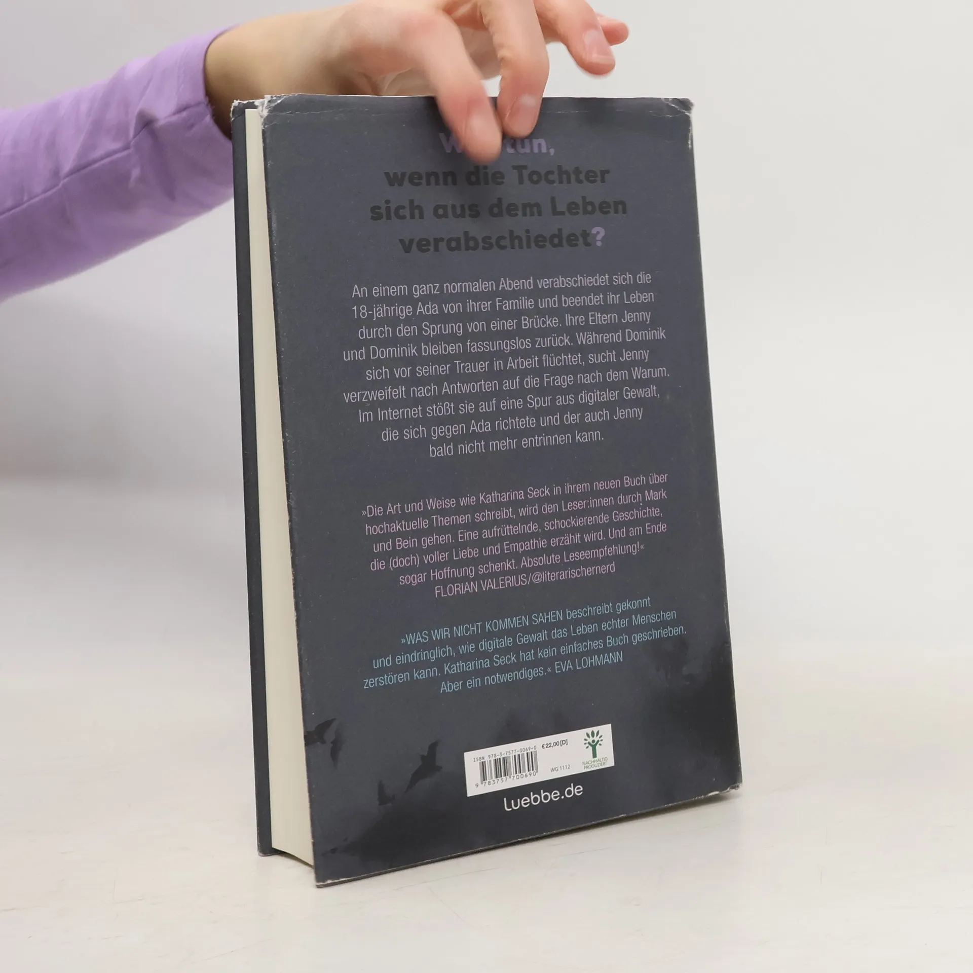 Katharina Seck greift in ihrem Roman ein sehr wichtiges, gesellschaftliches Thema auf. Die Gefahren des Internets. Die 18-jährige Ada stürzt sich in den Tod und niemand scheint zu wissen warum. Ihre Eltern haben nichts mitbekommen. Zuhause gab sie sich immer normal und gut gelaunt. Ein Teenager halt. Ihre Eltern, vor allem ihre Mutter, beginnen nach ihrem Selbstmord auf eigene Faust zu ermitteln. Was sie dabei zu Tage fördern, ist nichts für schwache Nerven. Immer mehr tauchen sie ein in die Welt in der Ada sich vor ihrem Tod bewegt hat. Es wird aus der Sicht von Ada, ihrer Mutter und der sogenannten Anonymität geschrieben. Durch die Anonymität bekommt man einen Eindruck, was in Menschen vorgehen könnte, die sich ihre Opfer online suchen. Gezielt oder auch nach Zufallsprinzip. Es werden viele gesellschaftlich relevante Themen angesprochen und macht auf die Gefahren, die im Internet lauern können, aufmerksam. Wie wichtig ein sorgsamer Umgang mit social Media und diversen Streamingplattformen ist. Ein Buch, dass auf jeden Fall zum Nachdenken anregt.