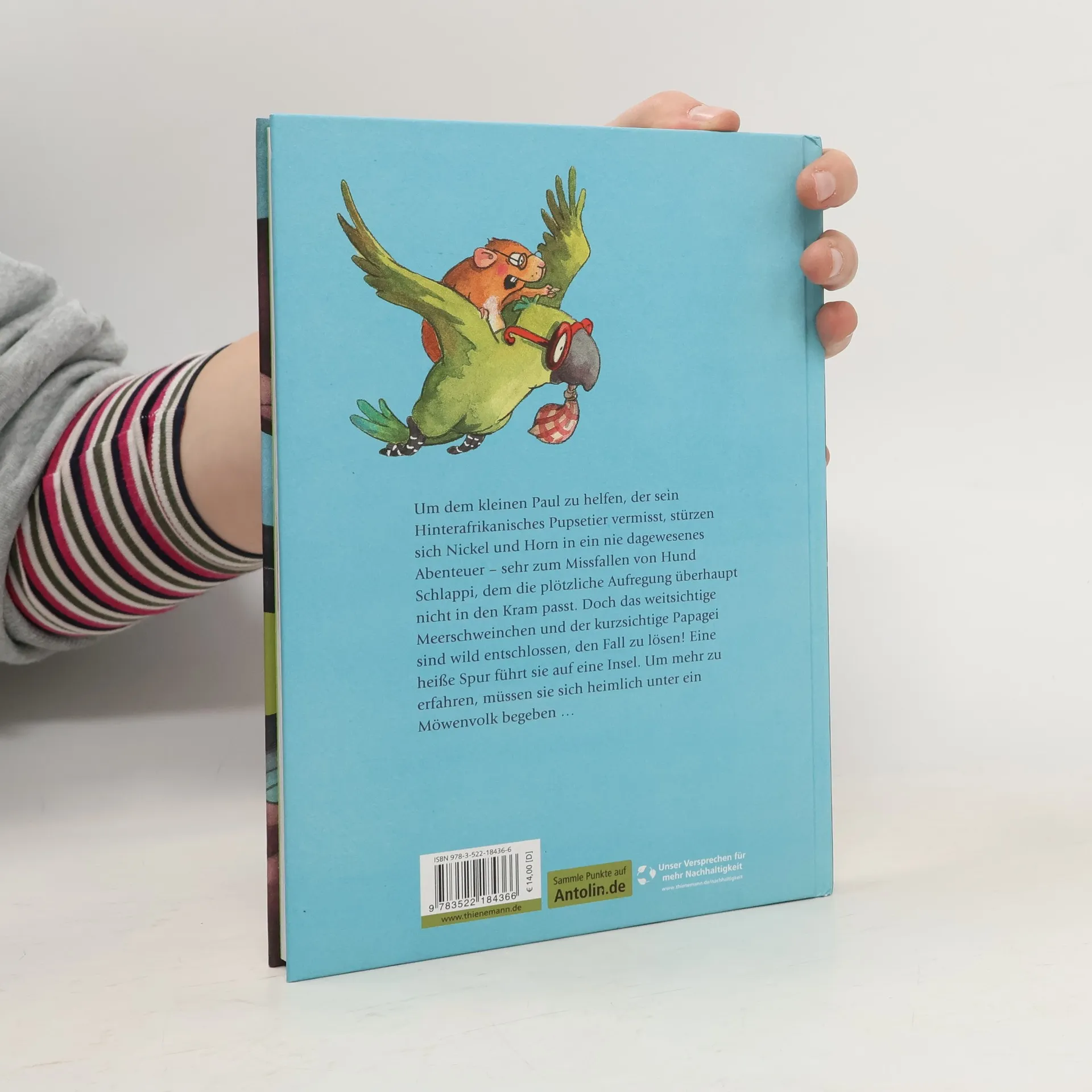 Ein weitsichtiges Meerschweinchen und ein kurzsichtiger Papagei: das sind Nickel und Horn. Sie leben bei Herrn Locke, einem Detektiv im Ruhestand, für den sie jahrelang gearbeitet haben. Dessen Hund Schlappi wacht darüber, dass bloß nichts die Rentnerruhe stört. Als dem Nachbarjungen Paul dann aber sein hinterafrikanisches Pupsetier geklaut wird und er um Hilfe bittet, machen sich die Freunde Nickel und Horn mit ihren vielseitig einsetzbaren Brillen selbst als Detektive an die Arbeit. Ihre Recherchen führen sie auf eine einsame Insel im Meer, wo sie sich undercover unter ein Möwenvolk begeben, um mehr zu erfahren. Werden Nickel und Horn den Fall lösen?