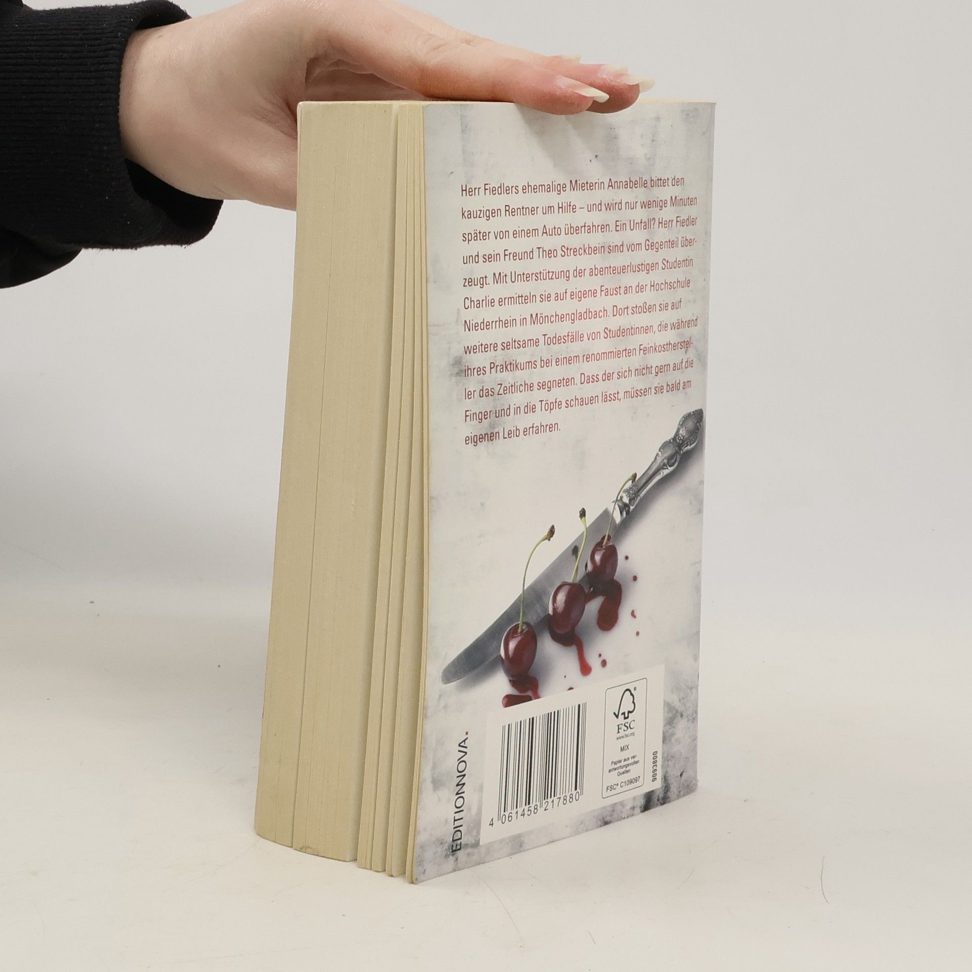 Annabelle bittet den Herrn Fiedler um Hilfe - und wird nur wenige Minuten später von einem Auto überfahren. Ein Unfall? Herr Fiedler und Theo ermitteln mit Unterstützung der abenteuerlustigen Studentin Charlie an der Mönchengladbacher Hochschule. Weitere Todesfälle von Studentinnen lenken ihr Interesse auf einen renommierten Feinkosthersteller. Dass der sich nicht gern in die Töpfe schauen lässt, erfahren sie bald am eigenen Leib.
