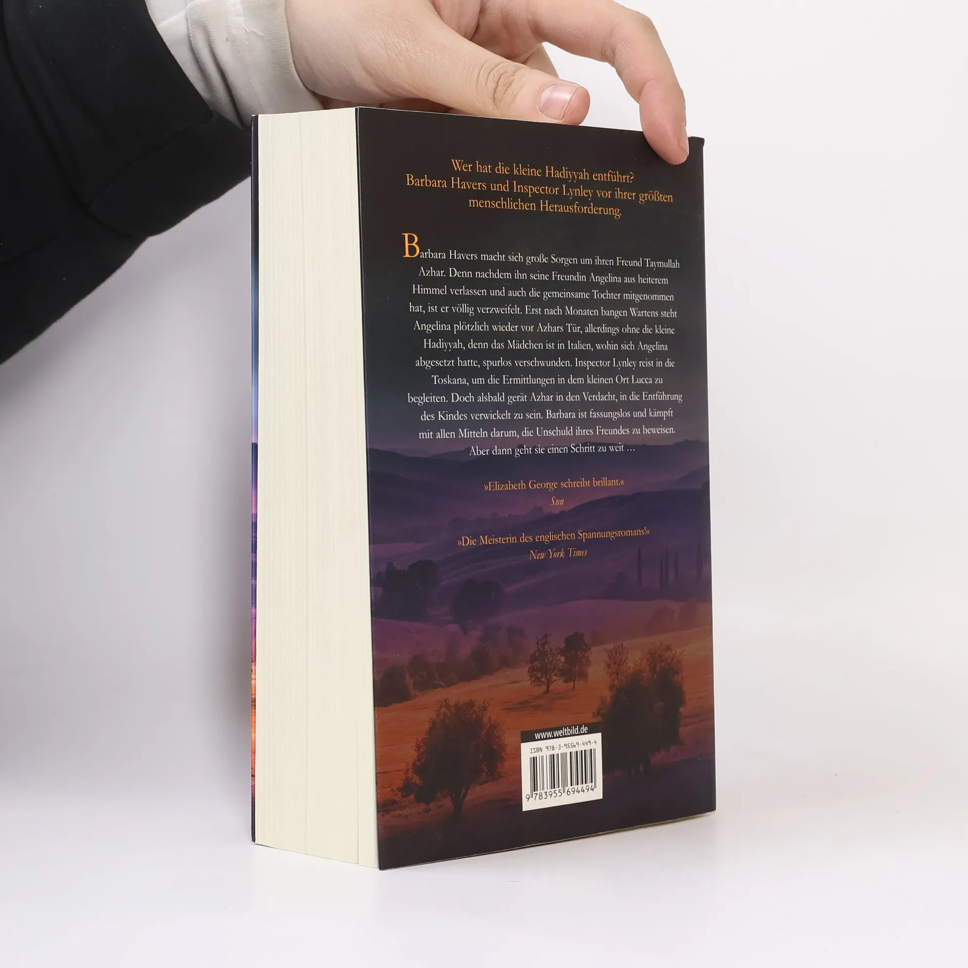 Barbara Havers sorgt sich um ihren Freund Taymullah Azhar: Dessen Freundin hat ihn verlassen, sich nach Italien abgesetzt, und die gemeinsame Tochter Hadiyyah ist dort spurlos verschwunden. Inspector Lynley reist in die Toskana, um die Ermittlungen in dem kleinen Ort Lucca zu begleiten. Doch bald wird Azhar selbst mit der Entführung des Kindes in Verbindung gebracht. Barbara ist fassungslos und kämpft mit allen Mitteln darum, die Unschuld ihres Freundes zu beweisen. Bis sie einen Schritt zu weit geht ...