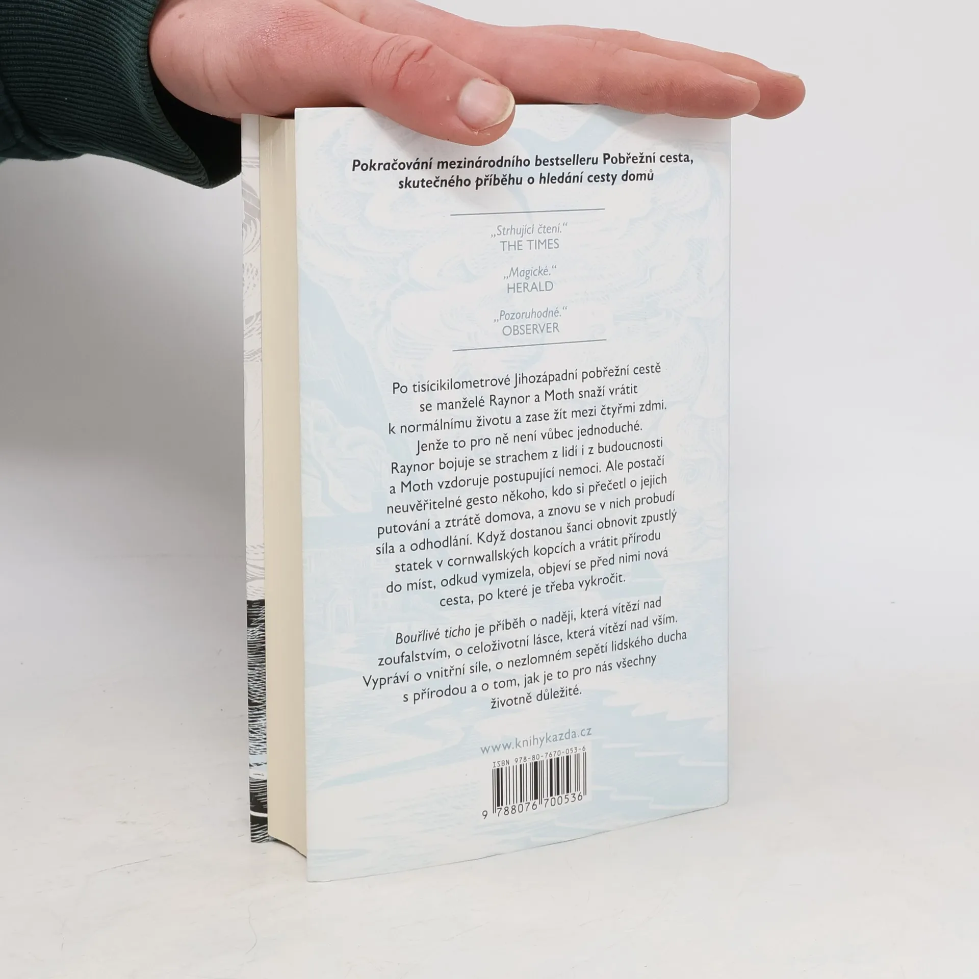 Po tisícikilometrové Jihozápadní pobřežní cestě se manželé Raynor a Moth snaží vrátit k normálnímu životu a zase žít mezi čtyřmi zdmi. Jenže to pro ně není vůbec jednoduché. Raynor bojuje se strachem z lidí i z budoucnosti a Moth vzdoruje postupující nemoci. Ale postačí neuvěřitelné gesto někoho, kdo si přečetl o jejich putování a ztrátě domova, a znovu se v nich probudí síla a odhodlání. Když dostanou šanci obnovit zpustlý statek v cornwallských kopcích a vrátit přírodu do míst, odkud vymizela, objeví se před nimi nová cesta, po které je třeba vykročit. Bouřlivé ticho je příběh o naději, která vítězí nad zoufalstvím, o celoživotní lásce, která vítězí nad vším. Vypráví o vnitřní síle, o nezlomném sepětí lidského ducha s přírodou a o tom, jak je to pro nás všechny životně důležité.