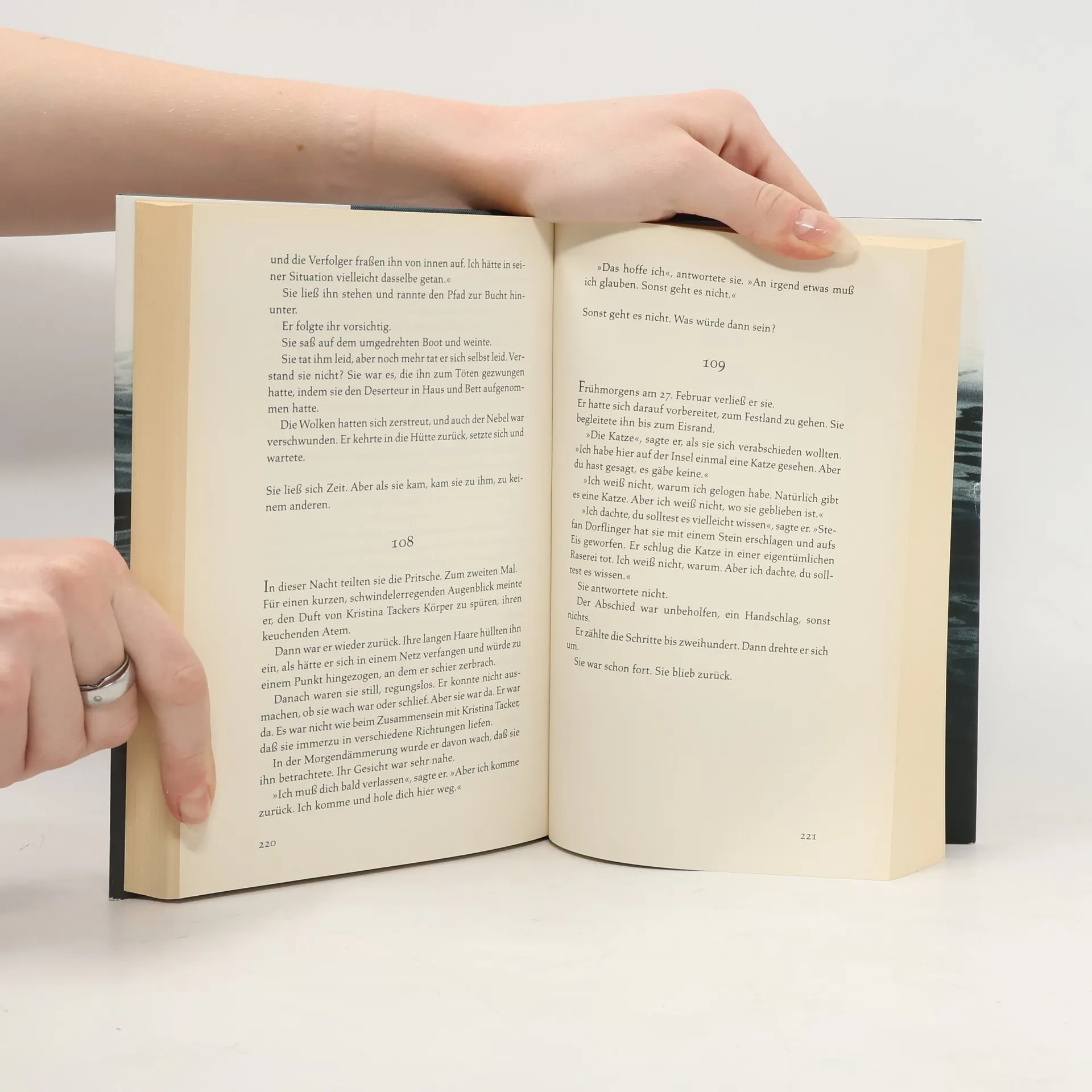 Lars Tobiasson-Svartman ist Marineoffizier und Seevermessungsingenieur, ein Mann der Abstandmessung und des Abstandhaltens. Es ist die Zeit des Ersten Weltkriegs und er hat den militärischen Auftrag, in den Stockholmer Schären neue Fahrwasser auszuloten. Eines Tages trifft er auf einer der äußersten Schären eine einsam lebende Frau, Sara Fredrika. Es ist Liebe auf den ersten Blick. Doch bald geht sein Auftrag zu Ende, und zu Hause erwarten ihn seine Frau und ein geordnetes Heim. Um zu Sara Fredrika zurückkehren zu können, ersinnt er einen dreisten Betrug ... Ein Mann zwischen zwei Frauen. Ein Mensch, der über Leichen geht, um ans Ziel seiner Wünsche zu gelangen. Ein Roman über die finsteren Abgründe der Seele und das Böse in uns.