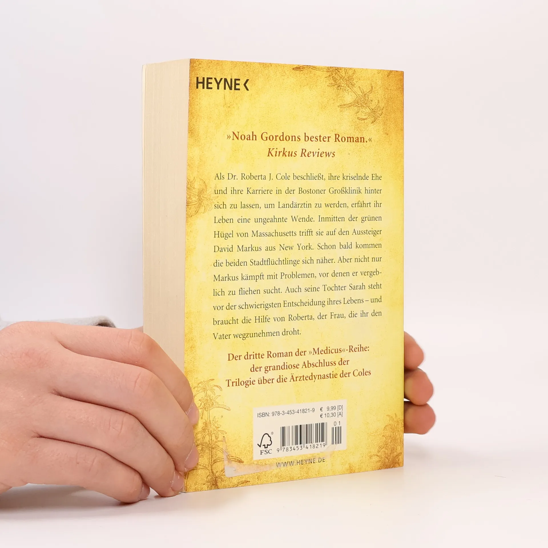 Der dritte Roman der Medicus-Reihe: der grandiose Abschluss der Trilogie über die Ärztedynastie der Coles Als Dr. Roberta J. Cole beschließt, ihre kriselnde Ehe und ihre Karriere in der Bostoner Großklinik hinter sich zu lassen, um Landärztin zu werden, erfährt ihr Leben eine ungeahnte Wende. Inmitten der grünen Hügel von Massachusetts trifft sie auf den Aussteiger David Markus aus New York. Schon bald kommen die beiden Stadtflüchtlinge sich näher. Aber nicht nur David kämpft mit Problemen, vor denen er vergeblich zu fliehen sucht. Auch seine Tochter Sarah steht vor der schwierigsten Entscheidung ihres Lebens – und braucht die Hilfe von Roberta, der Frau, die ihr den Vater wegzunehmen droht.