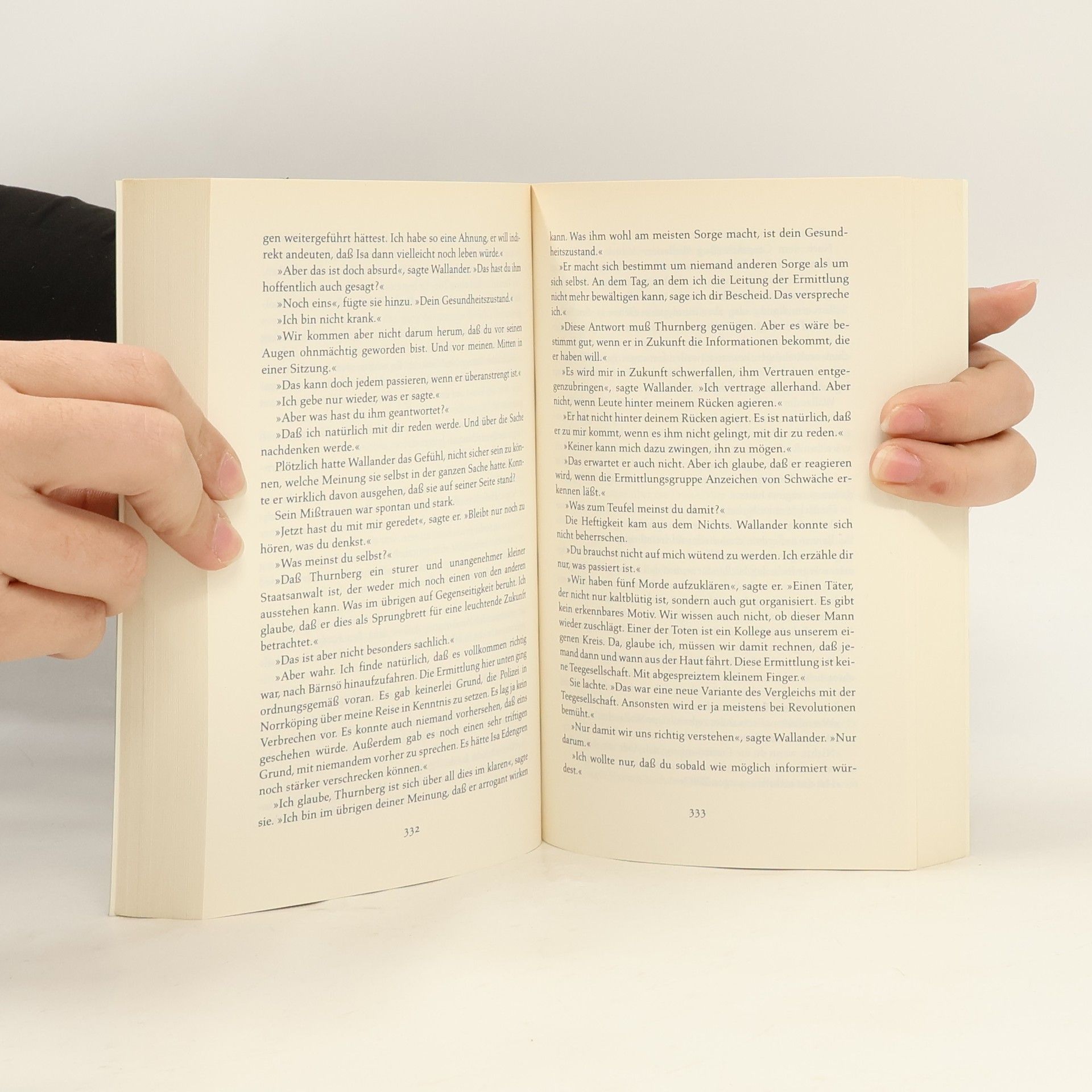 Drei Jugendliche werden ermordet; auch ein Polizist muss sterben ... Wallanders siebter Fall. Es sollte ein harmloses Rollenspiel werden, am 21. Juni 1996, ein kleines Verkleidungsritual in der mythenumrankten Mittsommernacht. Doch Wanderer schaudern, als sie Wochen später in einem Naturschutzgebiet auf die drei Jugendlichen stoßen, deren leblose Körper noch mit Miedern, Hemdkrausen und Perücken herausgeputzt sind. Bald ist es grausige Gewißheit: Sie wurden Opfer eines Verbrechens. Fast zur gleichen Zeit wird Kommissar Wallanders geschätzter Kollege Svedberg mit zerschossenem Gesicht in seiner Wohnung aufgefunden. Gibt es einen Zusammenhang zwischen den Fällen? Kurt Wallander stürzt sich verzweifelt in die Ermittlungen. Dabei stellt er zu seinem Entsetzen fest, wie wenig er über seinen Kollegen weiß, mit dem er jahrelang zusammengearbeitet hat ...