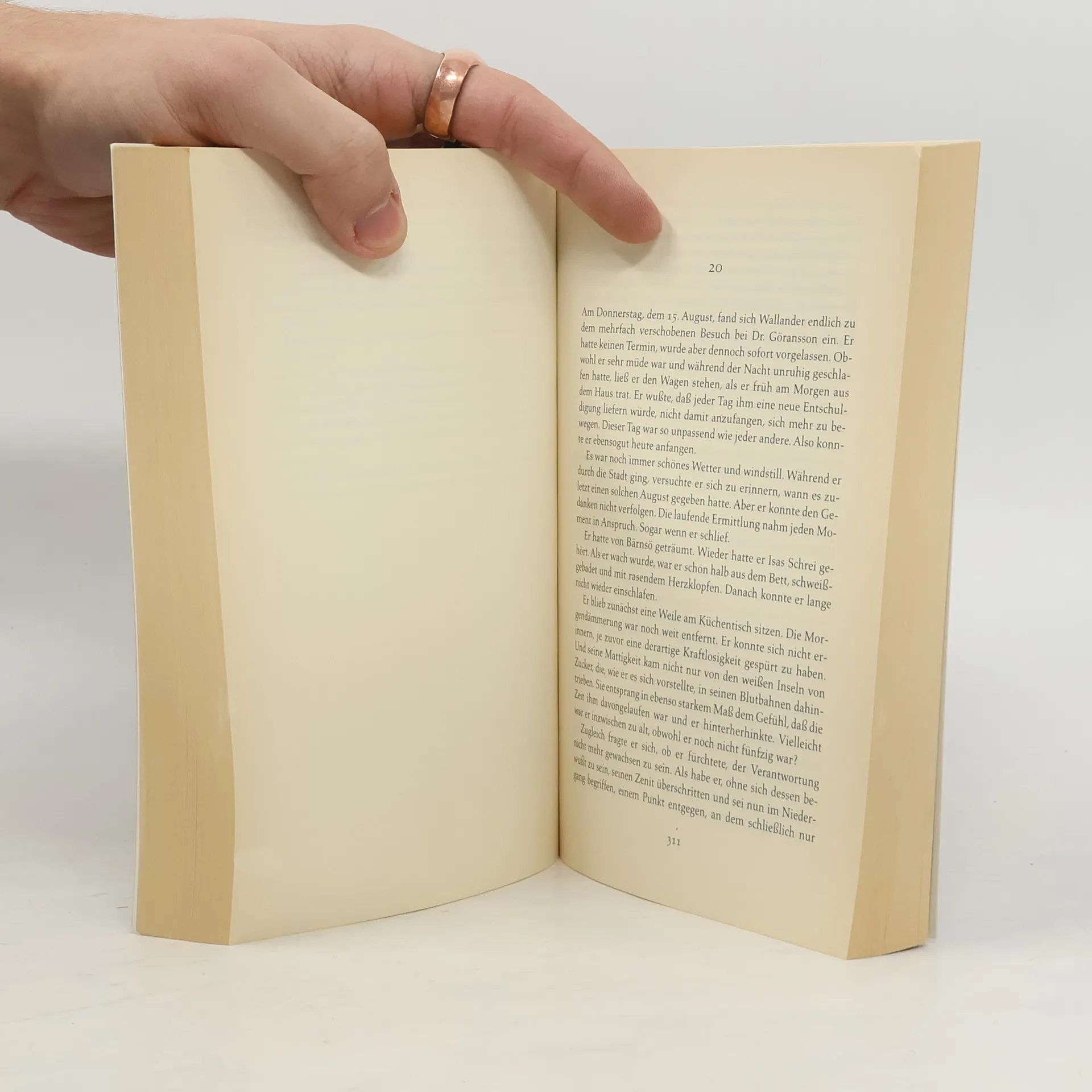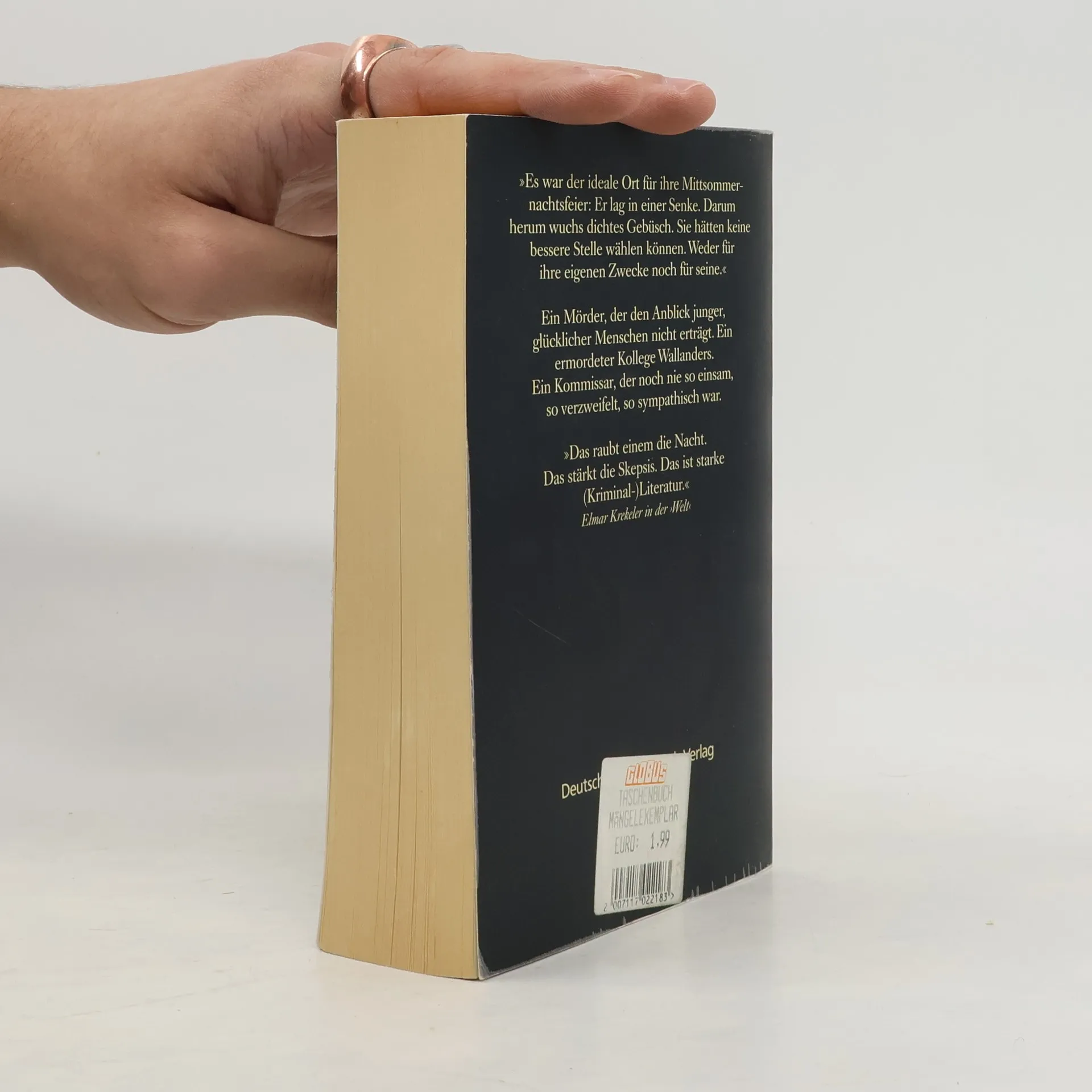 Drei Jugendliche werden ermordet; auch ein Polizist muss sterben ... Wallanders siebter Fall. Es sollte ein harmloses Rollenspiel werden, am 21. Juni 1996, ein kleines Verkleidungsritual in der mythenumrankten Mittsommernacht. Doch Wanderer schaudern, als sie Wochen später in einem Naturschutzgebiet auf die drei Jugendlichen stoßen, deren leblose Körper noch mit Miedern, Hemdkrausen und Perücken herausgeputzt sind. Bald ist es grausige Gewißheit: Sie wurden Opfer eines Verbrechens. Fast zur gleichen Zeit wird Kommissar Wallanders geschätzter Kollege Svedberg mit zerschossenem Gesicht in seiner Wohnung aufgefunden. Gibt es einen Zusammenhang zwischen den Fällen? Kurt Wallander stürzt sich verzweifelt in die Ermittlungen. Dabei stellt er zu seinem Entsetzen fest, wie wenig er über seinen Kollegen weiß, mit dem er jahrelang zusammengearbeitet hat ...