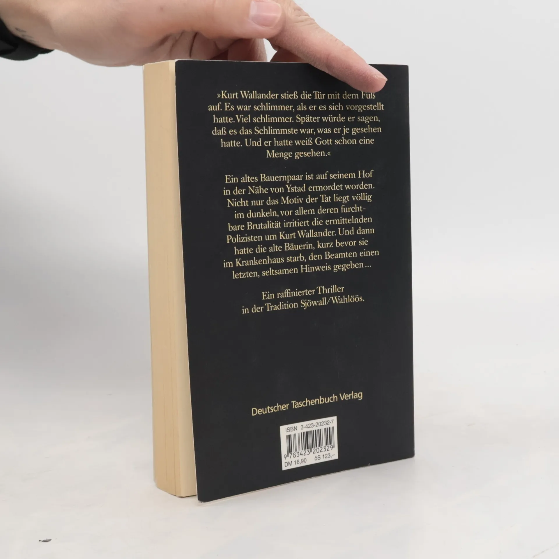 Ein altes Bauernpaar ist auf seinem Hof brutal ermordet worden. Kurz vor ihrem Tod hatte die Bäuerin noch einen letzten seltsamen Hinweis gegeben … Wallanders erster Fall. Kurt Wallander stieß die Tür mit dem Fuß auf. Es war schlimmer, als er es sich vorgestellt hatte. Viel schlimmer. Später würde er sagen, daß es das Schlimmste war, was er je gesehen hatte. Und dabei hatte er weiß Gott schon eine Menge gesehen. Ein altes Bauernpaar ist auf seinem Hof ermordet worden. Nicht nur das Motiv der Tat liegt völlig im Dunkeln, vor allem deren furchtbare Brutalität irritiert die ermittelnden Polizisten um Kurt Wallander. Und dann hatte die alte Bäuerin, kurz bevor sie im Krankenhaus starb, den Beamten noch einen letzten, seltsamen Hinweis gegeben ... Ein raffinierter psychologischer Kriminalroman in der Tradition Sjöwall/Wahlöös. ›Mörder ohne Gesicht‹ wurde 1992 als bester Thriller Skandinaviens ausgezeichnt.