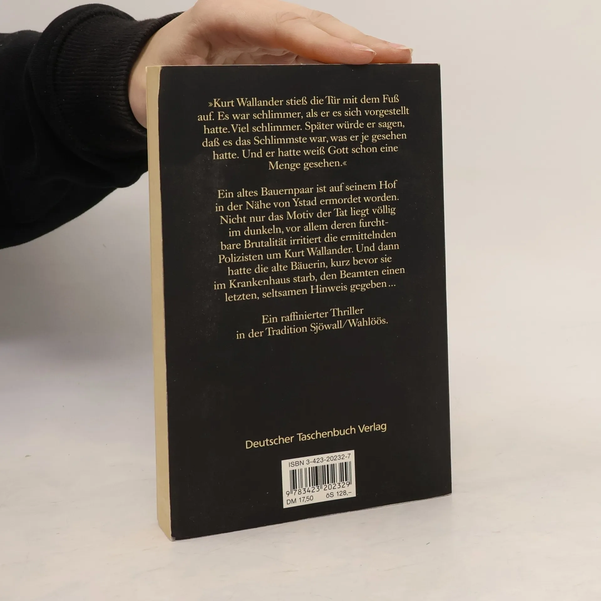 Ein altes Bauernpaar ist auf seinem Hof brutal ermordet worden. Kurz vor ihrem Tod hatte die Bäuerin noch einen letzten seltsamen Hinweis gegeben … Wallanders erster Fall. Kurt Wallander stieß die Tür mit dem Fuß auf. Es war schlimmer, als er es sich vorgestellt hatte. Viel schlimmer. Später würde er sagen, daß es das Schlimmste war, was er je gesehen hatte. Und dabei hatte er weiß Gott schon eine Menge gesehen. Ein altes Bauernpaar ist auf seinem Hof ermordet worden. Nicht nur das Motiv der Tat liegt völlig im Dunkeln, vor allem deren furchtbare Brutalität irritiert die ermittelnden Polizisten um Kurt Wallander. Und dann hatte die alte Bäuerin, kurz bevor sie im Krankenhaus starb, den Beamten noch einen letzten, seltsamen Hinweis gegeben ... Ein raffinierter psychologischer Kriminalroman in der Tradition Sjöwall/Wahlöös. ›Mörder ohne Gesicht‹ wurde 1992 als bester Thriller Skandinaviens ausgezeichnt.