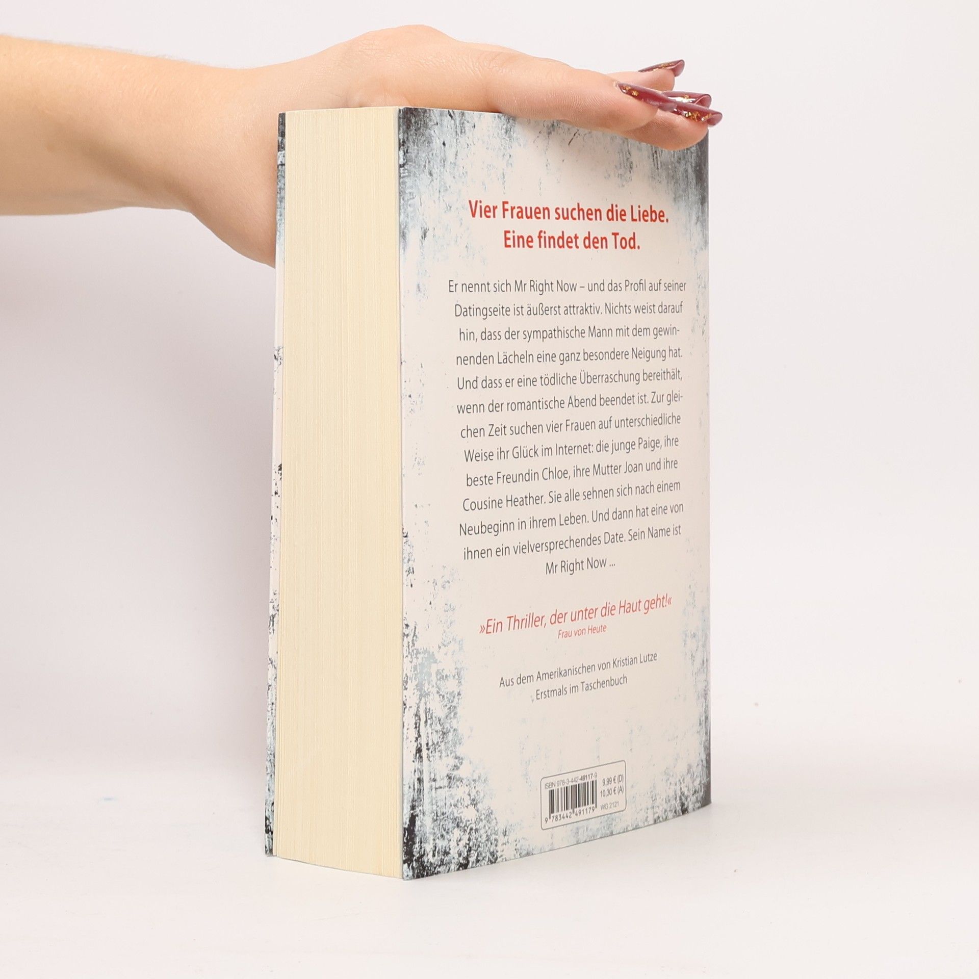 Vier Frauen suchen die Liebe. Eine findet den Tod. Er nennt sich Mr Right Now – und das Profil auf seiner Datingseite ist äußerst attraktiv. Nichts weist darauf hin, dass der sympathische Mann mit dem gewinnenden Lächeln eine ganz besondere Neigung hat. Und dass er eine tödliche Überraschung bereithält, wenn der romantische Abend beendet ist. Zur gleichen Zeit suchen vier Frauen auf unterschiedliche Weise ihr Glück im Internet: die junge Paige, ihre beste Freundin Chloe, ihre Mutter Joan und ihre Cousine Heather. Sie alle sehnen sich nach einem Neubeginn in ihrem Leben. Und dann hat eine von ihnen ein vielversprechendes Date. Sein Name ist Mr Right Now …
