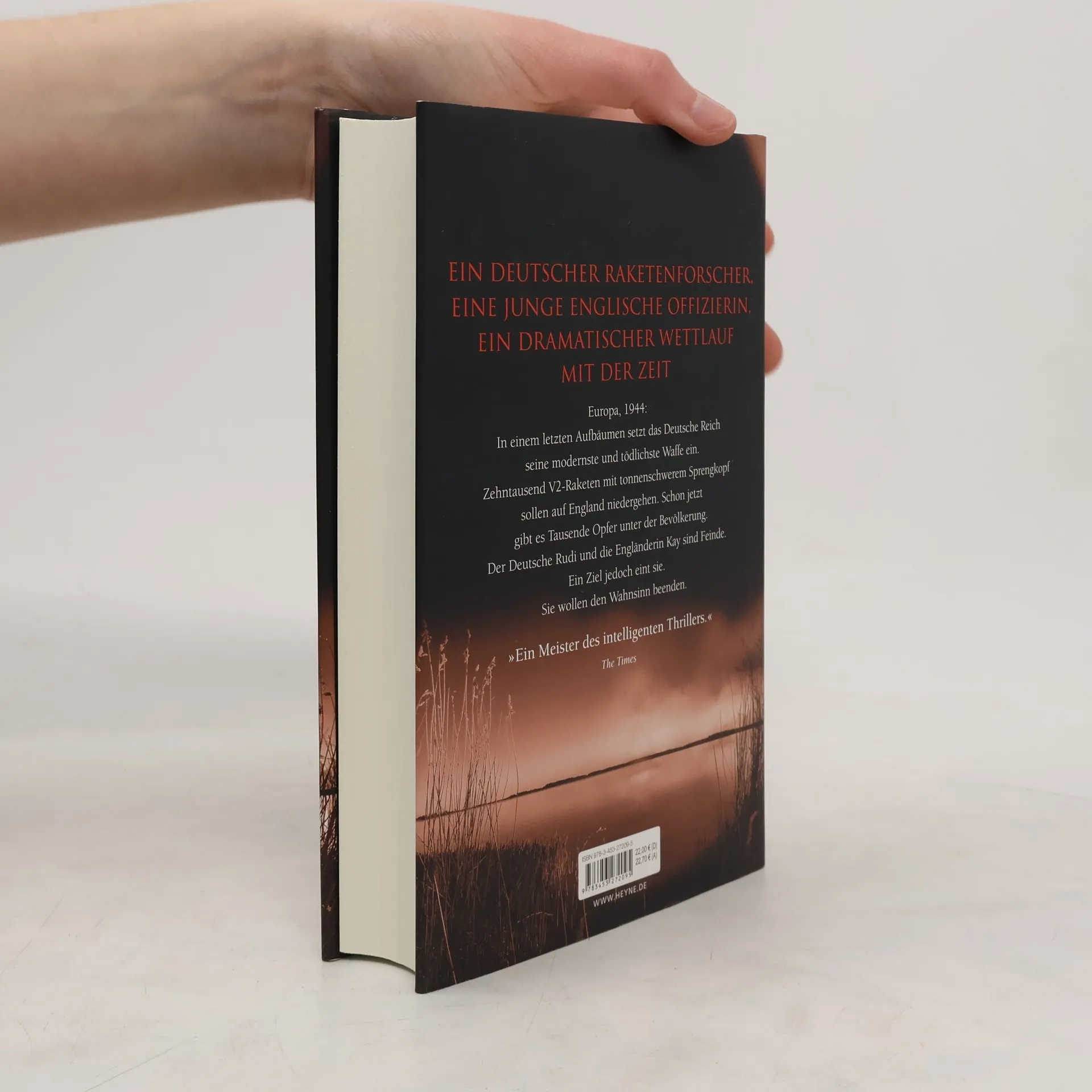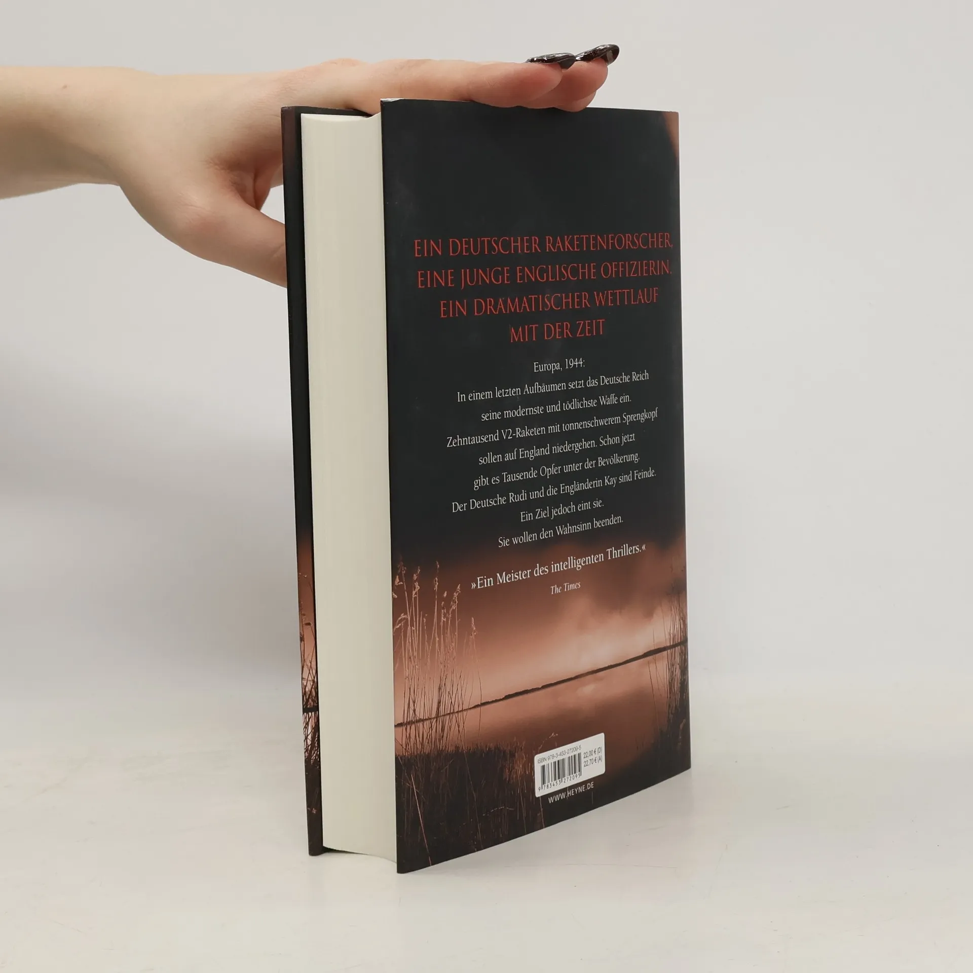 November 1944. Das Deutsche Reich steht vor der Niederlage. In einer Großoffensive setzt es seine modernste Waffe ein – die V2. Tausende dieser ballistischen Raketen mit schwerem Sprengkopf werden auf England abgeschossen. Radar und Aufklärer können sie nicht orten – wie aus dem Nichts stürzen sie mit Überschallgeschwindigkeit auf London herab.Der Ingenieur Rudi Graf hat mit seinem Freund Wernher von Braun einst davon geträumt, einmal eine Rakete zum Mond zu schicken. Jetzt findet er sich im besetzten Holland wieder, wo er die technische Aufsicht über die Abschüsse hat. Vom Krieg ist er längst desillusioniert. Inzwischen ermittelt gar ein NS-Führungsoffizier wegen Sabotageverdacht gegen ihn.Kay Caton-Walsh, Offizierin im Frauenhilfsdienst der britischen Luftwaffe, entkommt einem V2-Einschlag nur knapp. Als kurz darauf 160 Menschen von einer der Raketen getötet werden, vor allem Frauen und Kinder, meldet sie sich freiwillig zu einer lebensgefährlichen Mission. Zusammen mit Kameradinnen wird sie im befreiten Belgien abgesetzt. Dort sollen sie die mobilen Startplätze ausfindig machen und zerstören. Das Schicksal wird Kay und Rudi schließlich aufeinandertreffen lassen.