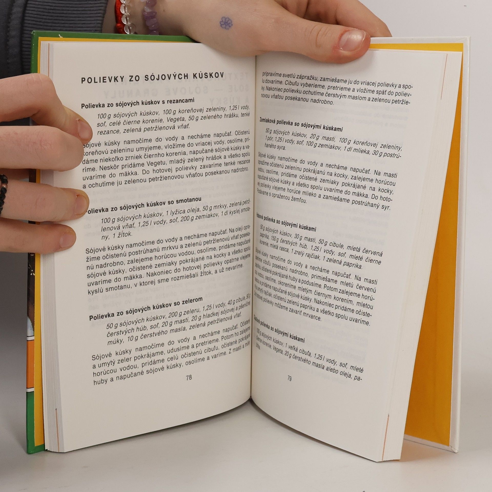 V kuchárskej knižke nájdete 540 jedál nenáročnej kuchyne zo sóje, fazule, fazuľky, hrachu a hrášku, šošovice, rôznych obilnín, vločiek, ryže a kukurice s kútikom pre vegetariánov. Kapitoly: Sója-Polievky, Závarky a vložky zo sójovej múky, Rôzne jedlá zo sóje a sójovej múky, Sójové nátierky a šaláty, Múčniky a múčne jedlá so sójovou múkou. Texturované proteiny sóje-sójové granuly a kúsky-Polievky zo sójových kúskov, Rôzne jedlá so sójovými granulami a kúskami, Nátierky a šaláty so sójovými kúskami, Fazuľa-fazuľka-Polievky, Rôzne jedlá z fazule a fazuľky, Fazuľové a fazuľkové šaláty, Sladké fazuľové múčniky. Hrach-hrášok-Polievky, Rôzne jedlá z hrachu a hrášku, Šošovica-Polievky, Rôzne jedlá zo šošovice, Cícer-Polievky a rôzne jedlá z cícera, Obilniny-Polievky a rôzne jedlá z obilnín, Sladké jedlá a múčniky z obilnín, Kútik pre vegetariánov-Polievky, Rôzne jedlá, Šaláty. Druhé, doplnené vydanie.