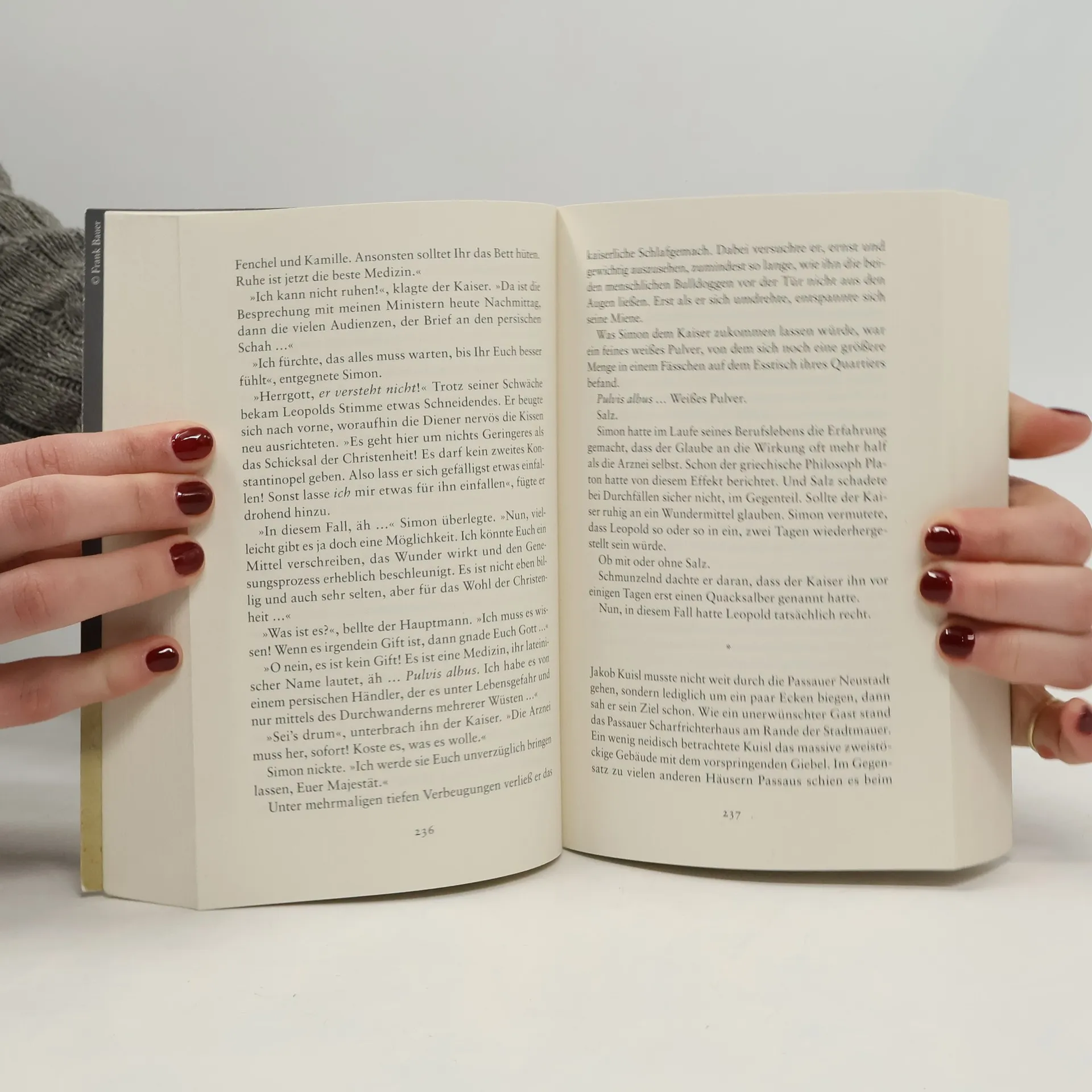 Im historischen Roman "Die Henkerstochter und das Vermächtnis des Henkers" von Oliver Pötzsch steht der Henker Jakob Kuisl im Jahr 1683 vor einer großen Herausforderung. Während das osmanische Heer Wien bedroht, erhält er einen Hilferuf von einem alten Freund. Als er in Passau ankommt, entdeckt er dessen grausamen Mord und schließt sich mit anderen Söldnern zusammen, um den Täter zu finden.