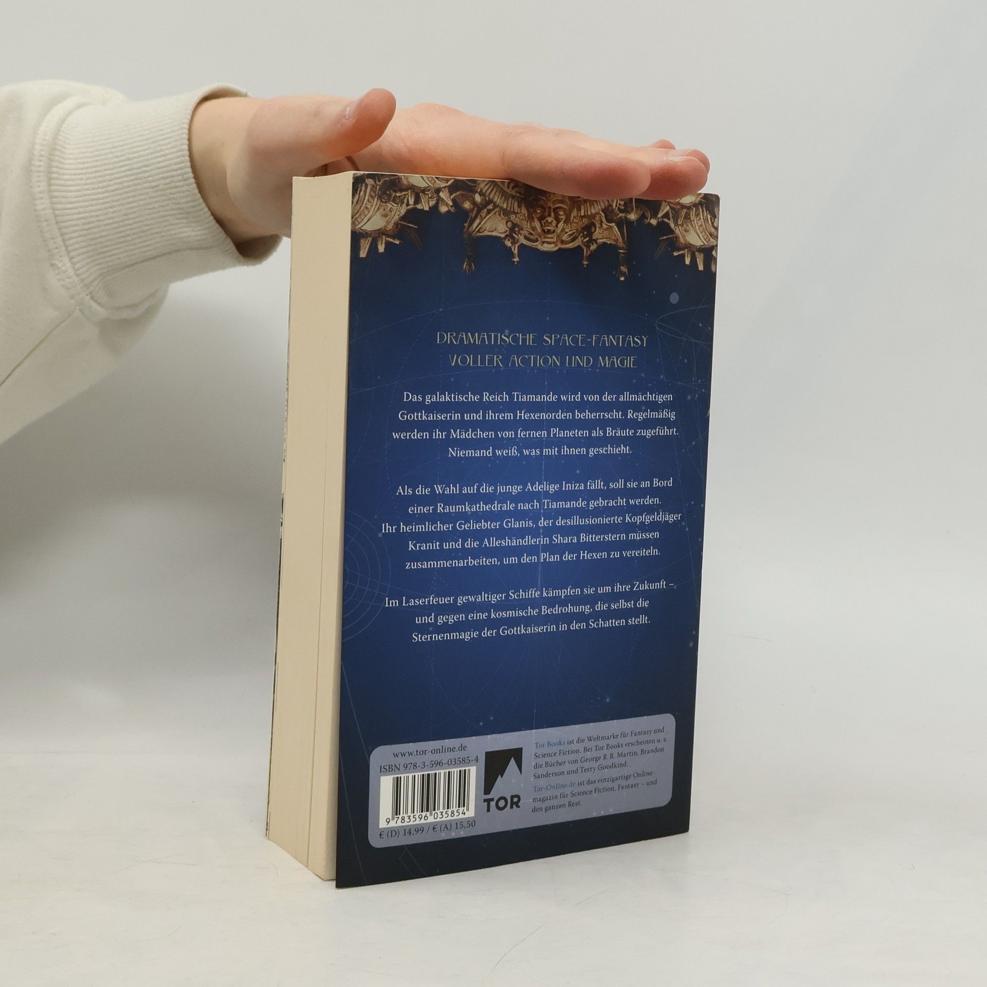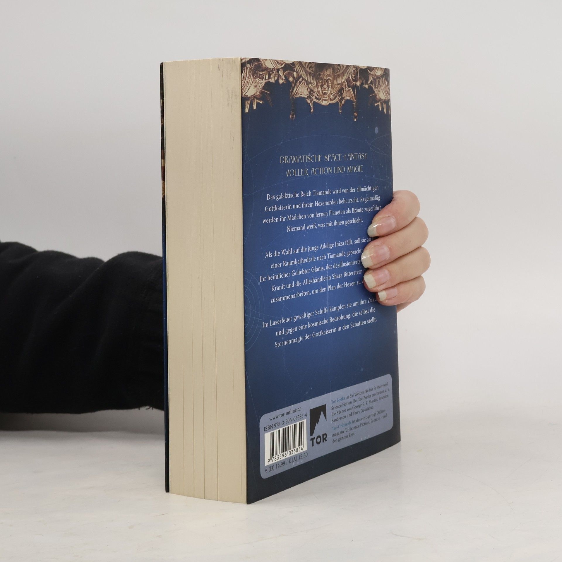 Ein dramatisches Weltraumabenteuer im Breitwandformat voller Action und Magie von Bestsellerautor Kai Meyer Das galaktische Reich von Tiamande wird von der allmächtigen Gottkaiserin und ihrem Hexenorden beherrscht. Regelmäßig werden ihr Mädchen von fernen Planeten als Bräute zugeführt. Niemand weiß, was mit ihnen geschieht.Als die Wahl auf die junge Adelige Iniza fällt, soll sie an Bord einer Weltraumkathedrale auf die Thronwelt gebracht werden. Ihr heimlicher Geliebter Glanis, der desillusionierte Kopfgeldjäger Kranit und die Alleshändlerin Shara Bitterstern tun alles, um den Plan der Hexen zu vereiteln. Im Laserfeuer gewaltiger Raumschiffe kämpfen sie um ihre Zukunft – und gegen eine kosmische Bedrohung, die selbst die Sternenmagie der Gottkaiserin in den Schatten stellt. ›Die Krone der Sterne‹ ist eine Space-Fantasy der Extraklasse von Bestsellerautor Kai Meyer (›Die Seiten der Welt‹, ›Die Wellenläufer‹, ›Die fließende Königin‹). Illustriert wird das Buch mit zahlreichen Originalzeichnungen von Jens Maria Weber (›Codex Roboticus‹).