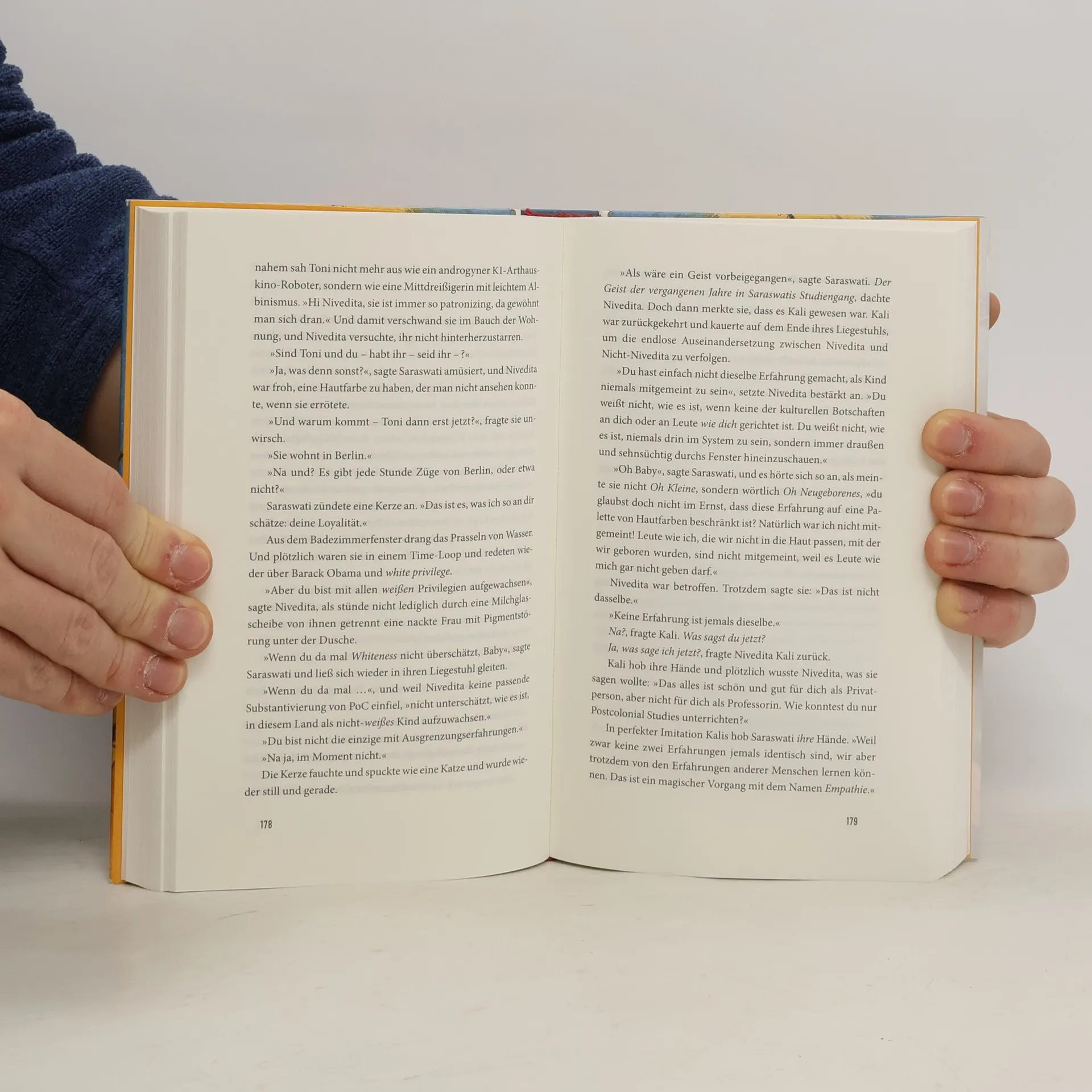 „Was für eine gnadenlos witzige Identitätssuche, die nichts und niemanden schont. Man ist nach der Lektüre nicht bloß schlauer – sondern auch garantiert besser gelaunt.“ (Alina Bronsky) - Auf der Shortlist des Deutschen Buchpreises 2021 Was für ein Skandal: Prof. Dr. Saraswati ist WEISS! Schlimmer geht es nicht. Denn die Professorin für Postcolonial Studies in Düsseldorf war eben noch die Übergöttin aller Debatten über Identität – und beschrieb sich als Person of Colour. Als würden Sally Rooney, Beyoncé und Frantz Fanon zusammen Sex Education gucken, beginnt damit eine Jagd nach „echter“ Zugehörigkeit. Während das Netz Saraswati hetzt und Demos ihre Entlassung fordern, stellt ihre Studentin Nivedita ihr intimste Fragen. Mithu Sanyal schreibt mit beglückender Selbstironie und befreiendem Wissen. Den Schleudergang dieses Romans verlässt niemand, wie er*sie ihn betrat.