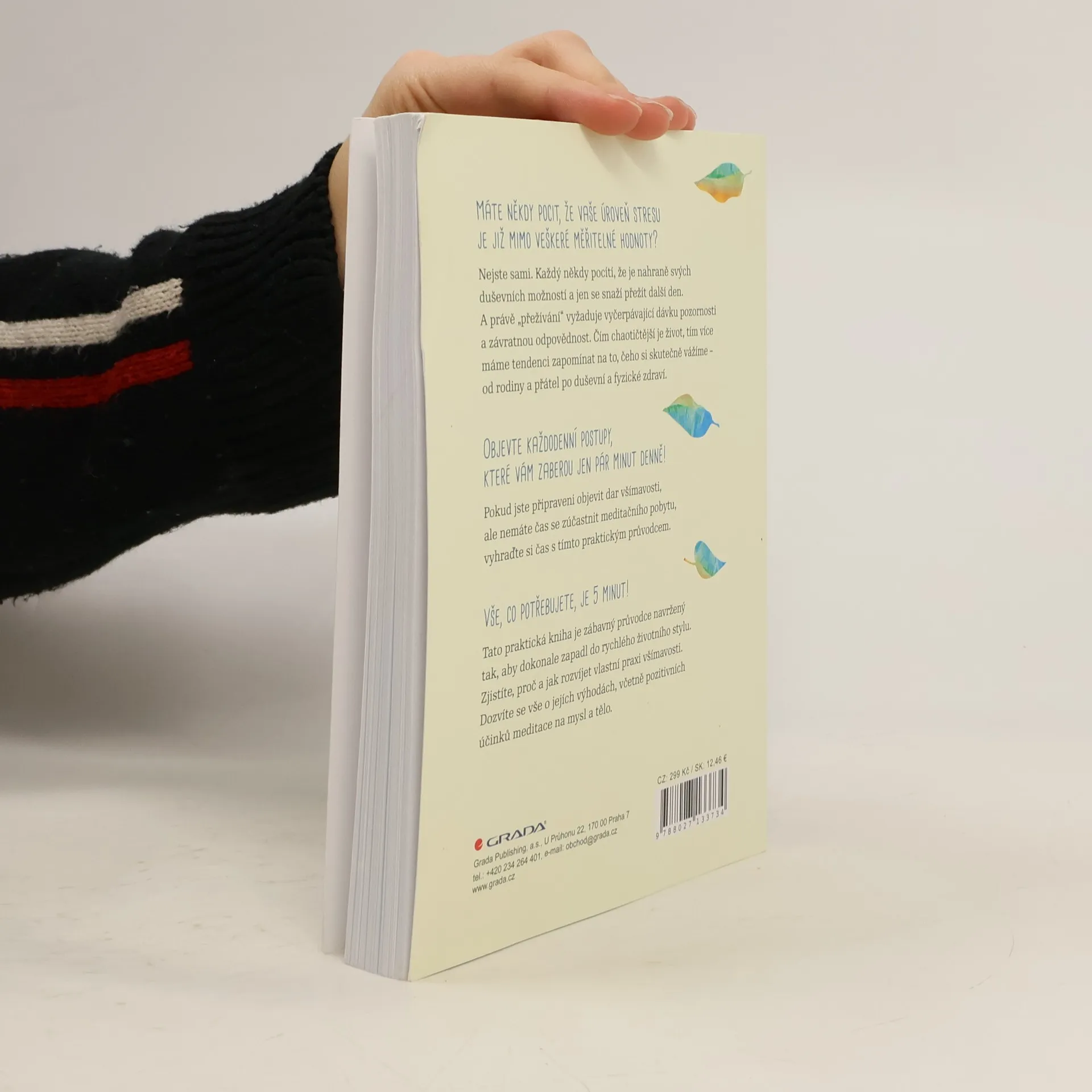 MÁTE NĚKDY POCIT, ŽE VAŠE ÚROVEŇ STRESU JE JIŽ MIMO VEŠKERÉ MĚŘITELNÉ HODNOTY? Nejste sami. Každý někdy pocítí, že je nahraně svých duševních možností a jen se snaží přežít další den. A právě „přežívání“ vyžaduje vyčerpávající dávku pozornosti a závratnou odpovědnost. Čím chaotičtější je život, tím více máme tendenci zapomínat na to, čeho si skutečně vážíme - od rodiny a přátel po duševní a fyzické zdraví. OBJEVTE KAŽDODENNÍ POSTUPY, KTERÉ VÁM ZABEROU JEN PÁR MINUT DENNĚ! Pokud jste připraveni objevit dar všímavosti, ale nemáte čas se zúčastnit meditačního pobytu, vyhraďte si čas s tímto praktickým průvodcem. VŠE, CO POTŘEBUJETE, JE 5 MINUT! Tato praktická kniha je zábavný průvodce navržený tak, aby dokonale zapadl do rychlého životního stylu. Zjistíte, proč a jak rozvíjet vlastní praxi všímavosti. Dozvíte se vše o jejích výhodách, včetně pozitivních účinků meditace na mysl a tělo.