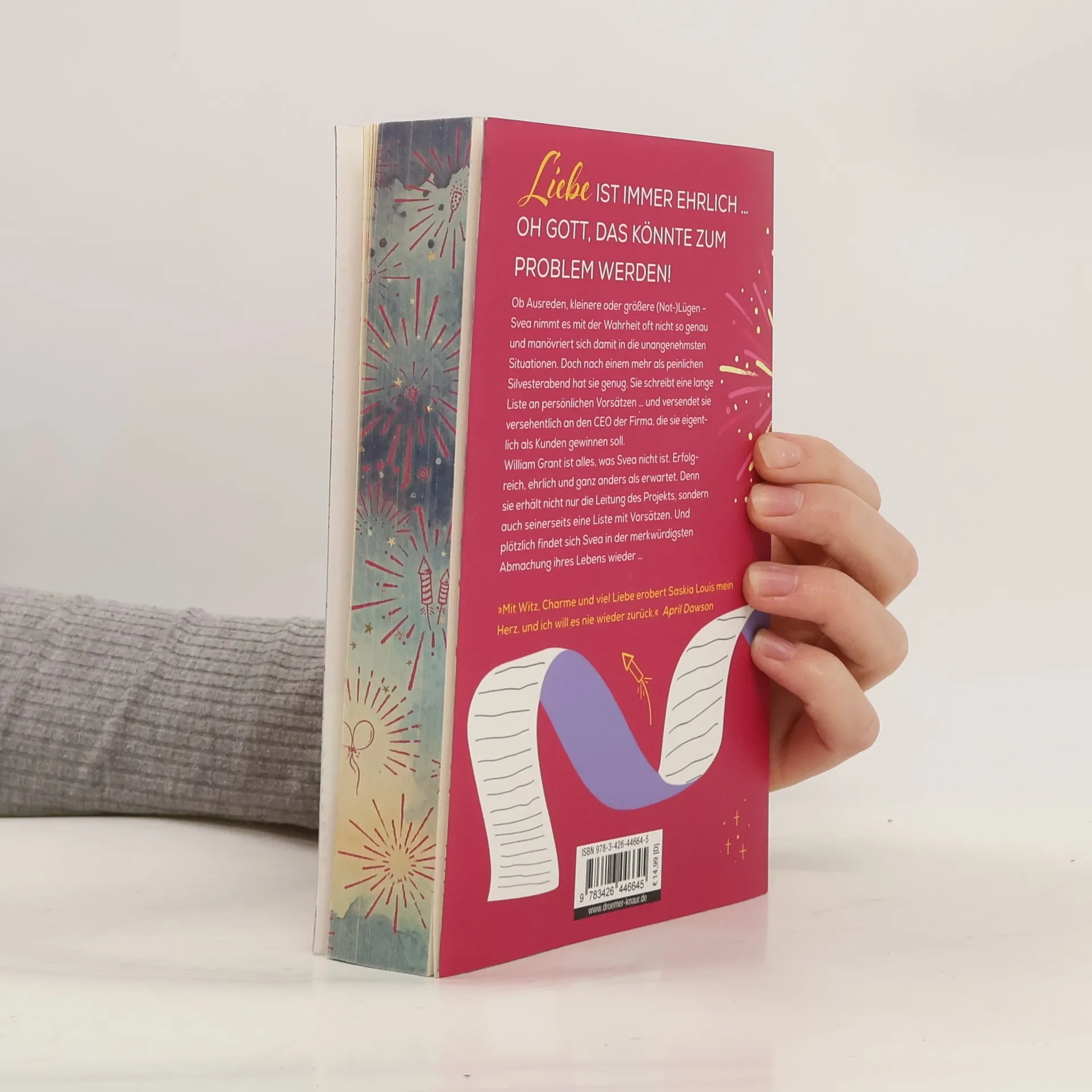 In "Ich will dies, das und dich" entdeckt die unperfekte Svea Nussbaum durch ihre persönliche Vorsatzliste die Bedeutung von Ehrlichkeit und wahrer Liebe. Nach einem peinlichen Vorfall sendet sie ihre Liste versehentlich an den CEO William Grant, der ihr eine unerwartete Chance bietet. Eine humorvolle und tiefgründige Liebesgeschichte über Gegensätze und gute Vorsätze.