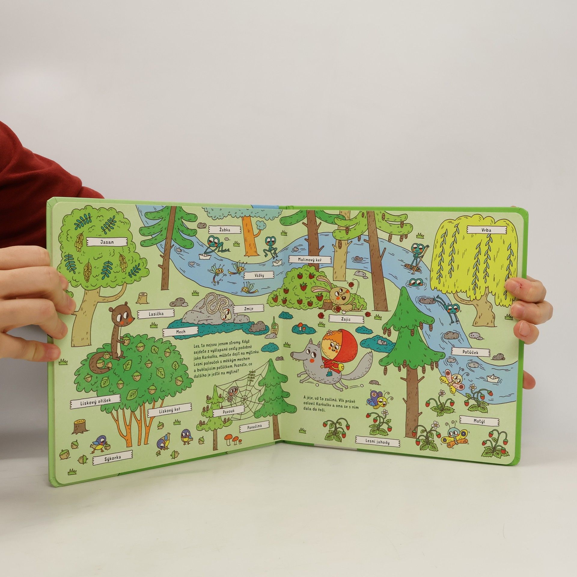 Nakoukněte s kamarádkou z oblíbené pohádky lesu pod pokličku! Jednoho dne se vydala Karkulka za babičkou. Musela sama a přes hluboký les. Potkala sice vlka, ale také poznala spoustu věcí, které dělají les lesem. Houby, stromy, zvířátka, sladké dobrůtky. Stopy lesa objevila i v útulné babiččině chaloupce. Příroda je zkrátka všudypřítomná a důležitá. Chcete se i vy naučit spolu s červenou holčičkou všechno o lese? Vezměte si košíčky s bábovkou, obujte pohodlné boty a pojďte s námi. Sejít z cestičky je dovoleno!