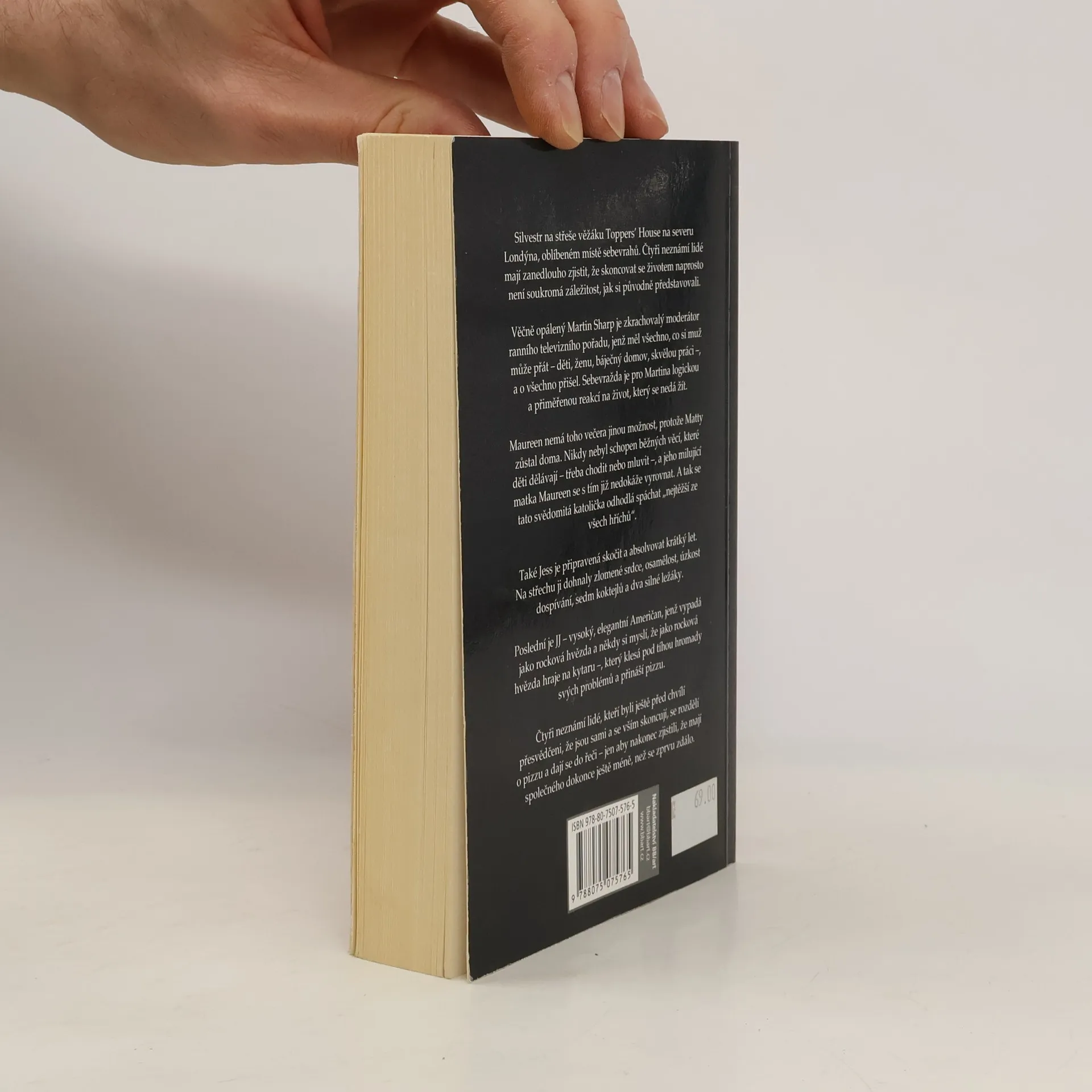 Silvestr na střeše věžáku Toppers' House na severu Londýna, oblíbeném místě sebevrahů. Čtyři neznámí lidé mají zanedlouho zjistit, že skoncovat se životem naprosto není soukromá záležitost, jak si původně představovali. Věčně opálený Martin Sharp je zkrachovalý moderátor ranního televizního pořadu, jenž měl všechno, co si muž muže přát - děti, ženu, báječný domov, skvělou práci - a o všechno přišel. Sebevražda Je pro Martina logickou a přiměřenou reakcí na život, který se nedá žít. Maureen nemá toho večera jinou možnost, protože Matty zůstal doma. Nikdy nebyl schopen běžných věcí, které děti dělávají - třeba chodit nebo mluvit - a jeho milující matka Maureen se s tím již nedokáže vyrovnat. A tak se tato svědomitá katolička odhodlá spáchat "nejtěžší ze všech hříchů". Také Jess je připravená skočit a absolvovat krátký let. Na střechu ji dohnaly zlomené srdce, osamělost, úzkost dospívání, sedm koktejlů a dva silné ležáky. Poslední je JJ - vysoký, elegantní Američan, jenž vypadá jako rocková hvězda a někdy si myslí, že jako rocková hvězda hraje na kytaru, který klesá pod tíhou hromady svých problému a přináší pizzu. Čtyři neznámí lidé, kteří byli ještě před chvílí přesvědčeni, že jsou sami a se vším skoncují, se rozdělí o pizzu a dají se do řeči - jen aby nakonec zjistili, že mají společného dokonce ještě méně, než se zprvu zdálo.