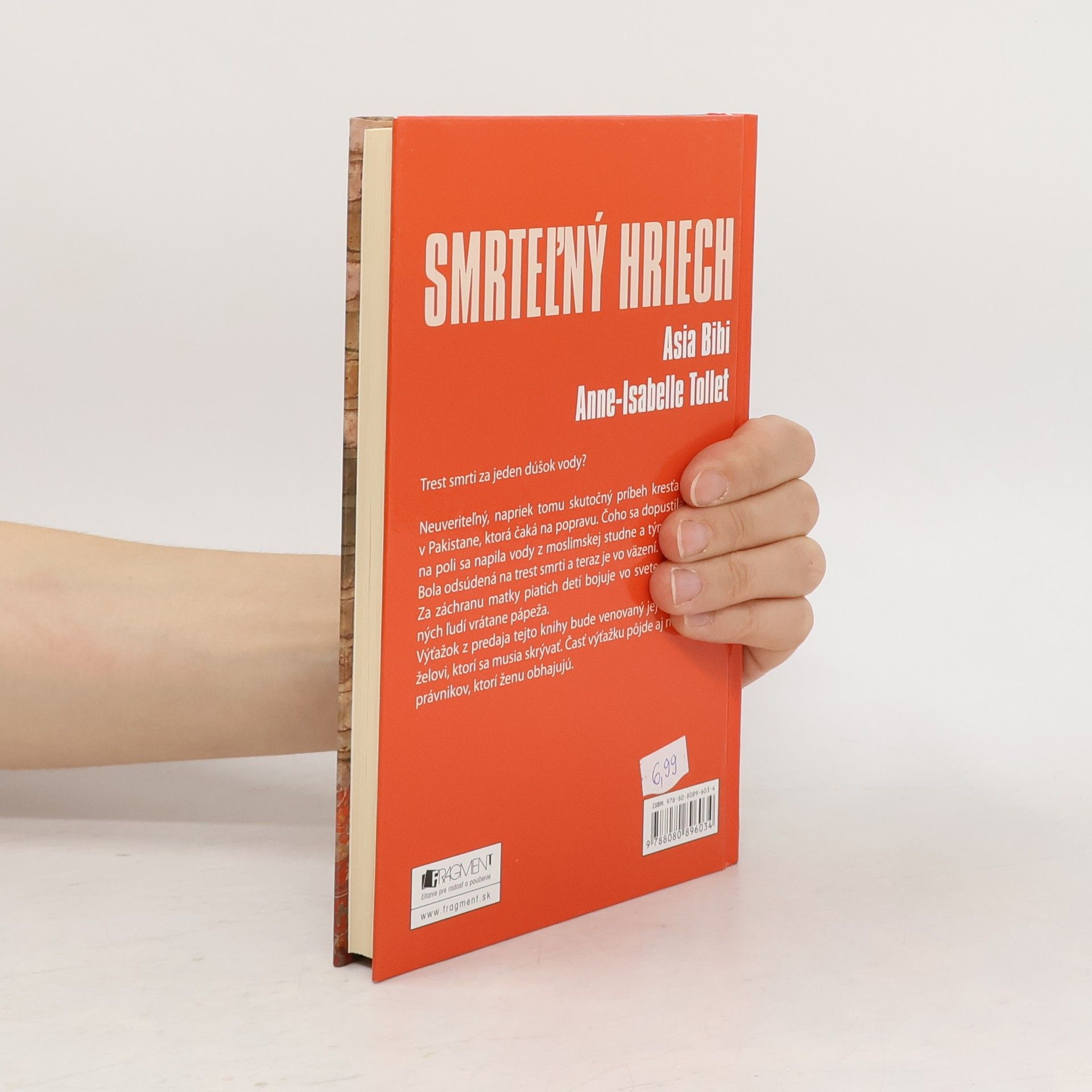 Skutočný príbeh kresťanky žijúcej v Pakistane, ktorá bola odsúdená na smrť za to, že sa pri práci na poli napila moslimskej posvätnej vody, a tým ju znečistila. Teraz je vo väzení a čaká na popravu. Bojuje za ňu mnoho vplyvných ľudí, vrátane pápeža. Niekoľko pakistanských politikov bolo zavraždených za to, že sa jej zastali. Výťažok z predaja knihy pôjde na právnikov, ktorí ju obhajujú, a na jej päť detí, ktoré zostali samé s otcom a musia sa ukrývať.