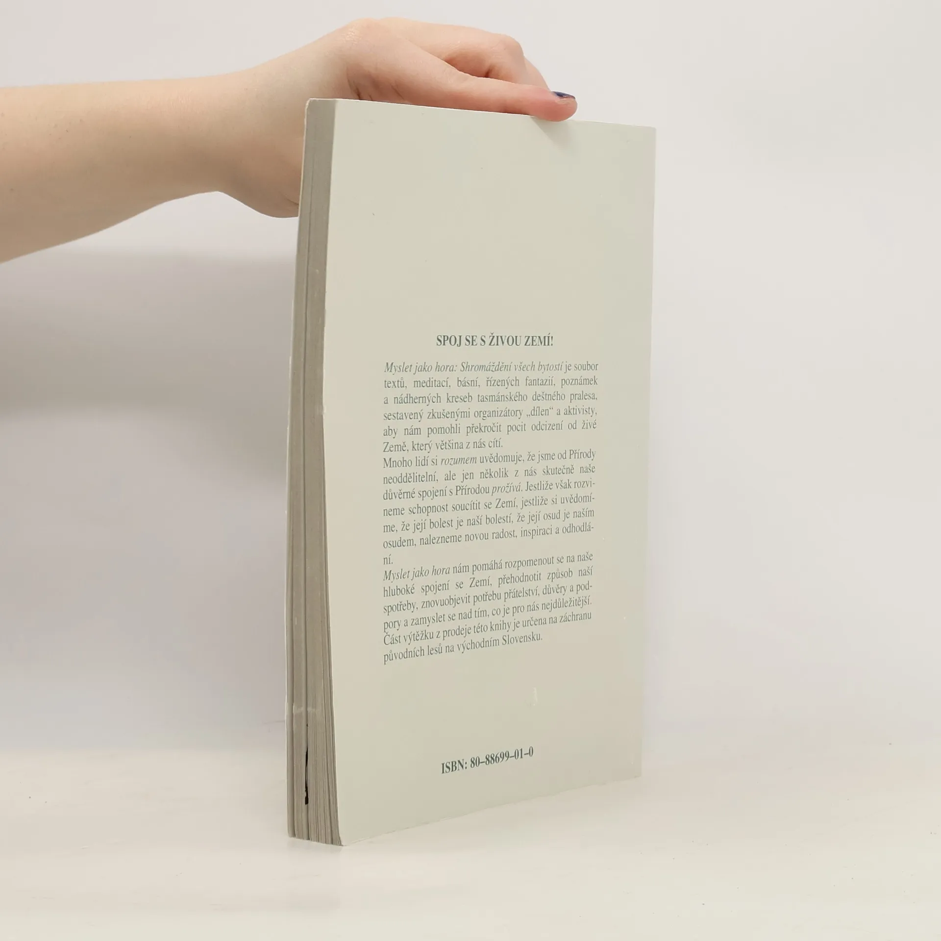 Myslet jako hora nám pomáhá rozpomenout se na naše hluboké spojení se Zemí, přehodnotit způsob naší spotřeby, znovuobjevit potřebu přátelství, důvěry a podpory a zamyslet se nad tím, co je pro nás nejdůležitejší. Část výtěžků z prodeje této knihy je určena na záchranu původních lesů na východním Slovensku.