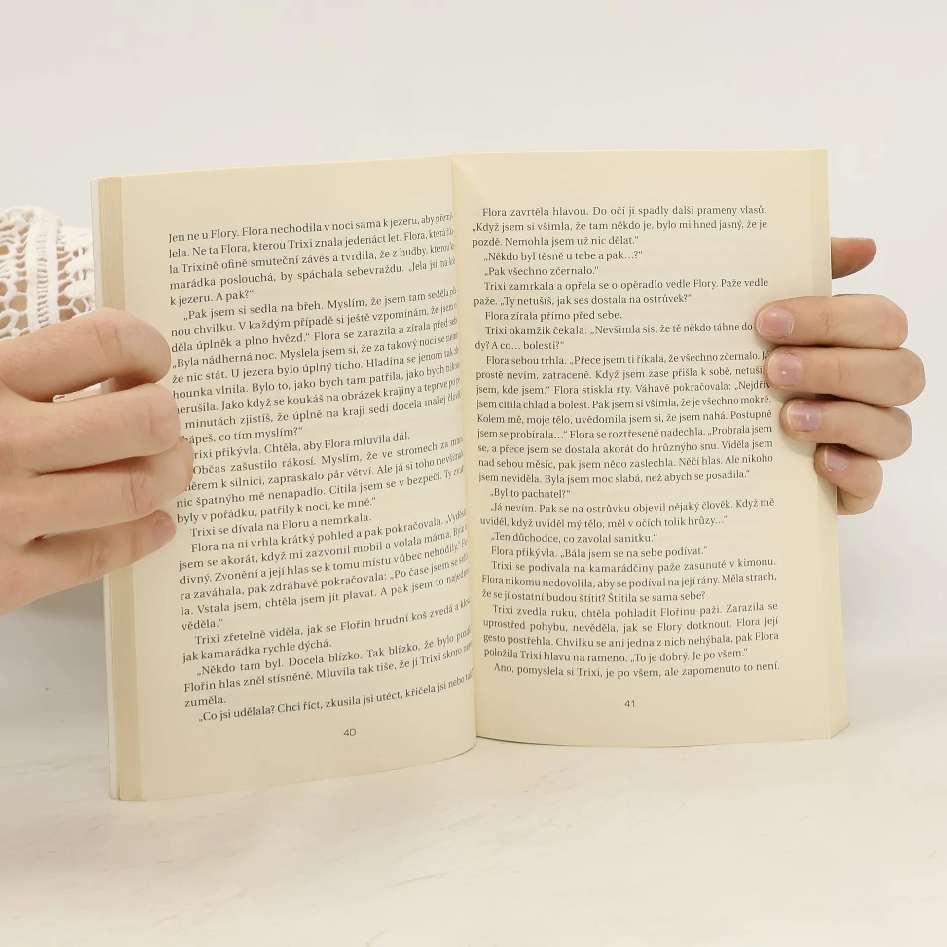 Existuje pouze den. Uplynulá noc není a nikdy nebyla... Na dřevěném ostrůvku uprostřed jezera je nalezena pobodaná dívka. Nikdo netuší, kdo mohl šestnáctileté Floře tak ublížit. Policie objeví spoustu stop, přesto se jí nedaří pachatele dopadnout. Opravdu si Flora z noci, kdy byla napadena, nic nepamatuje? Nebo snad mlčí úmyslně?
