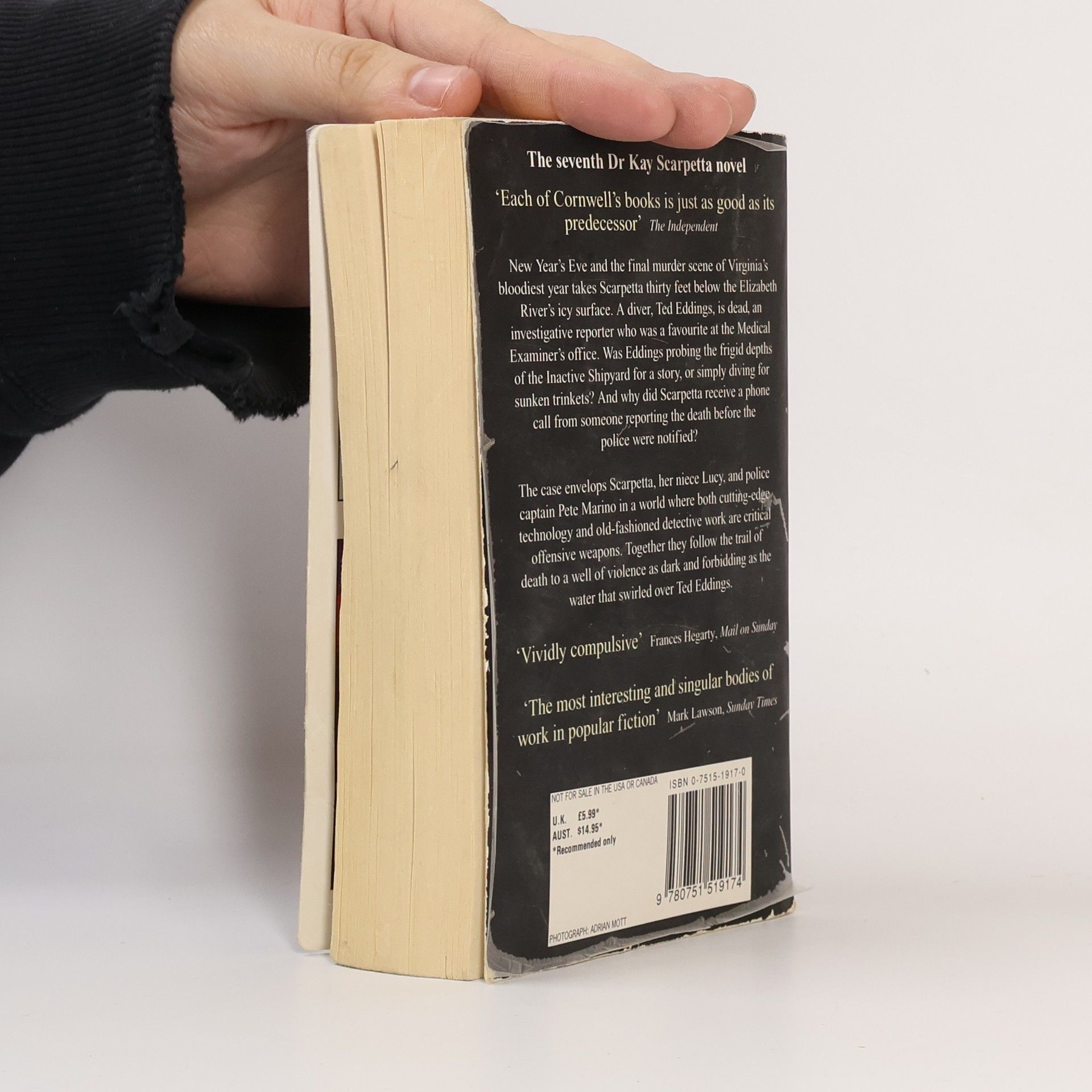 An investigative reporter is found dead in Virginia's icy waters ... New Year's Eve and the final murder scene of Virginia's bloodiest year takes Scarpetta thirty feet below the Elizabeth River's icy surface. A diver, Ted Eddings, is dead, an investigative reporter who was a favourite at the Medical Examiner's office. Was Eddings probing the frigid depths of the Inactive Shipyard for a story, or simply diving for sunken trinkets? And why did Scarpetta receive a phone call from someone reporting the death before the police were notified? The case envelops Scarpetta, her niece Lucy, and police captain Pete Marino in a world where both cutting-edge technology and old-fashioned detective work are critical offensive weapons. Together they follow the trail of death to a well of violence as dark and forbidding as water that swirled over Ted Eddings. For more about Patricia Cornwell and her books visit her website on www.patricia-cornwell.com