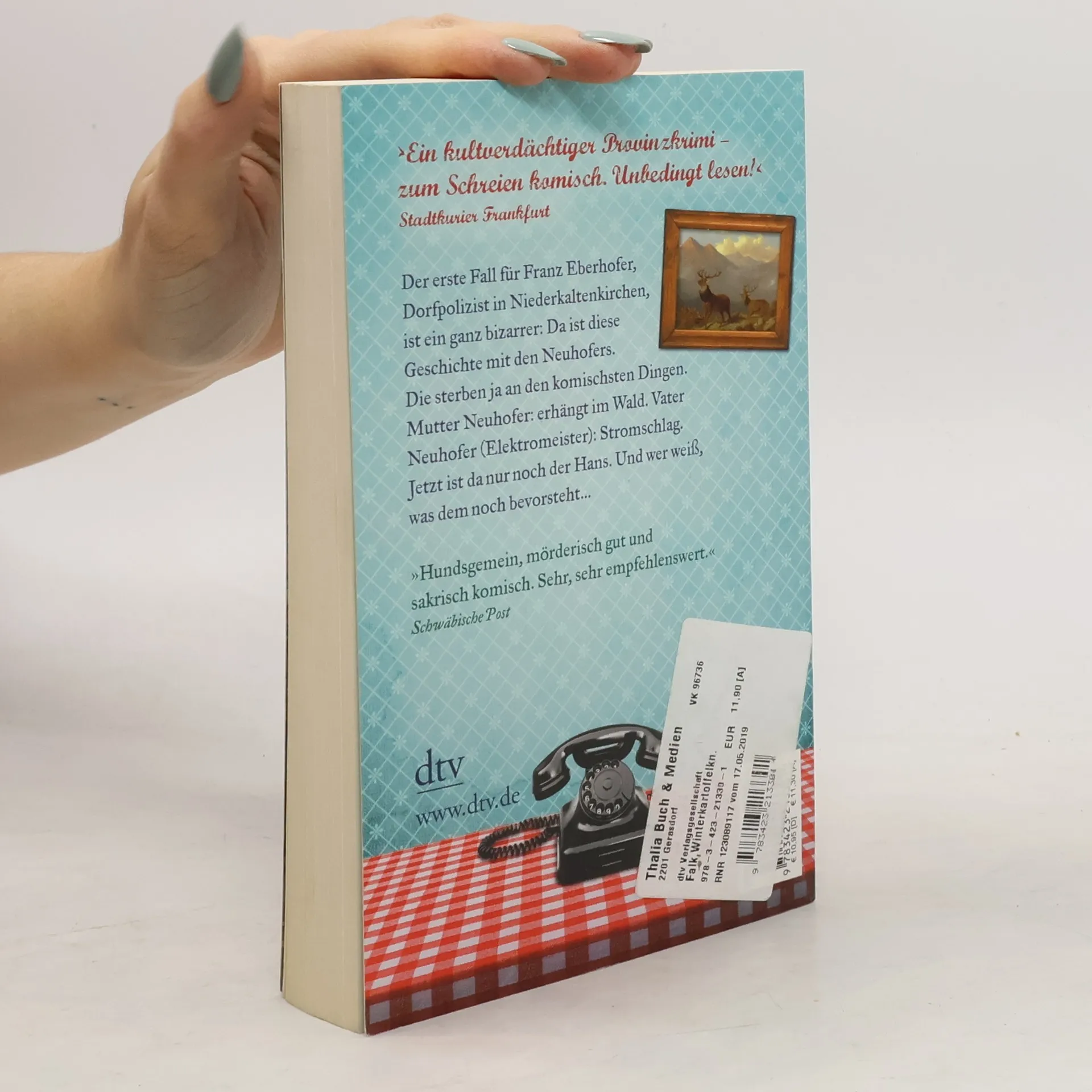 Franz Eberhofers erster Fall Nachdem der Eberhofer Franz seinen Dienst bei der Münchner Polizei quittieren musste und in sein niederbayerisches Heimatdorf Niederkaltenkirchen strafversetzt wurde, schiebt er eine ruhige Kugel. Seine Streifegänge führen ihn immer zum Wolfi auf ein Bier oder an den Küchentisch seiner stocktauben Großmutter. Sehr erholsam, bei all dem Zoff mit einem hanfanbauenden Vater (Alt-68er), der ihn mit Beatles-Dauerbeschallung noch in den Wahnsinn treibt. Aber manchmal muss der Eberhofer Franz auch in ziemlich grausigen Todesfällen ermitteln. So wie bei seinem ersten Fall: Da ist diese Geschichte mit den Neuhofers, die an den komischsten Dingen sterben. Mutter Neuhofer: erhängt im Wald. Vater Neuhofer (Elektromeister): Stromschlag. Jetzt ist da nur noch der Hans. Und wer weiß, was dem bevorsteht ...