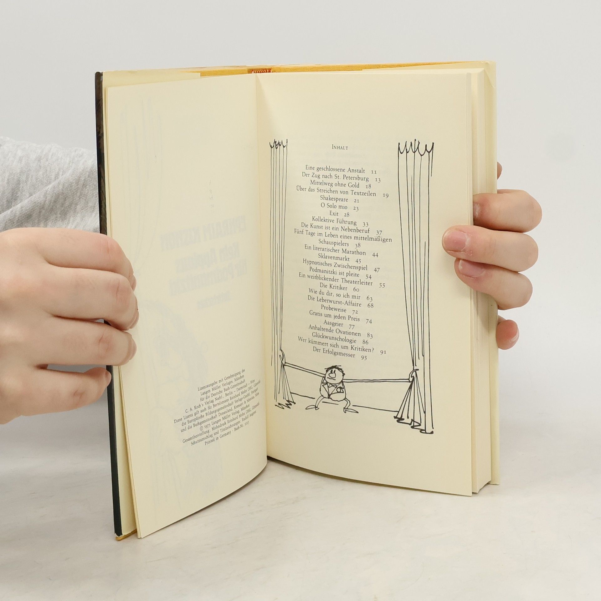 Ein hintergründiger Ausflug in die Welt des Theaters an der Seite des Kult-Satirikers. Jarden Podmanitzki ist ein mittelmäßiger Schauspieler, der noch nie allein auf der Bühne gestanden hat. Ephraim Kishon spaziert in dieser Geschichtensammlung durch die Welt des Theaters. Bühne frei - für einen großen Satiriker und das Leben selbst.
