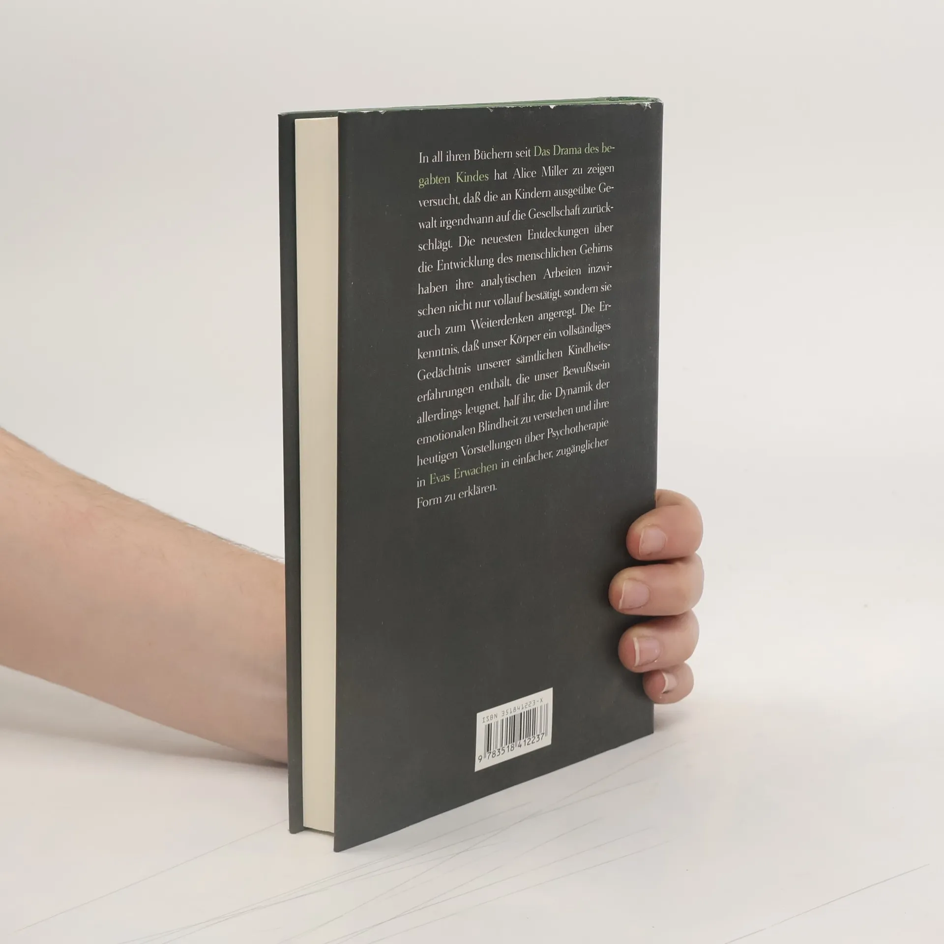 In all ihren Büchern seit Das Drama des begabten Kindes hat Alice Miller zu zeigen versucht, dass die an Kindern ausgeübte Gewalt irgendwann auf die Gesellschaft zurückschlägt. Die neuesten Entdeckungen über die Entwicklung des menschlichen Gehirns haben ihre analytischen Arbeiten inzwischen nicht nur vollauf bestätigt, sondern sie auch zum Weiterdenken angeregt. Die Erkenntnis, dass unser Körper ein vollständiges Gedächtnis unserer sämtlichen Kindheitserfahrungen enthält, die unser Bewusstsein allerdings leugnet, half ihr, die Dynamik der emotionalen Blindheit zu verstehen und ihre heutigen Vorstellungen über Psychotherapie in Evas Erwachen in einfacher, zugänglicher Form zu erklären.