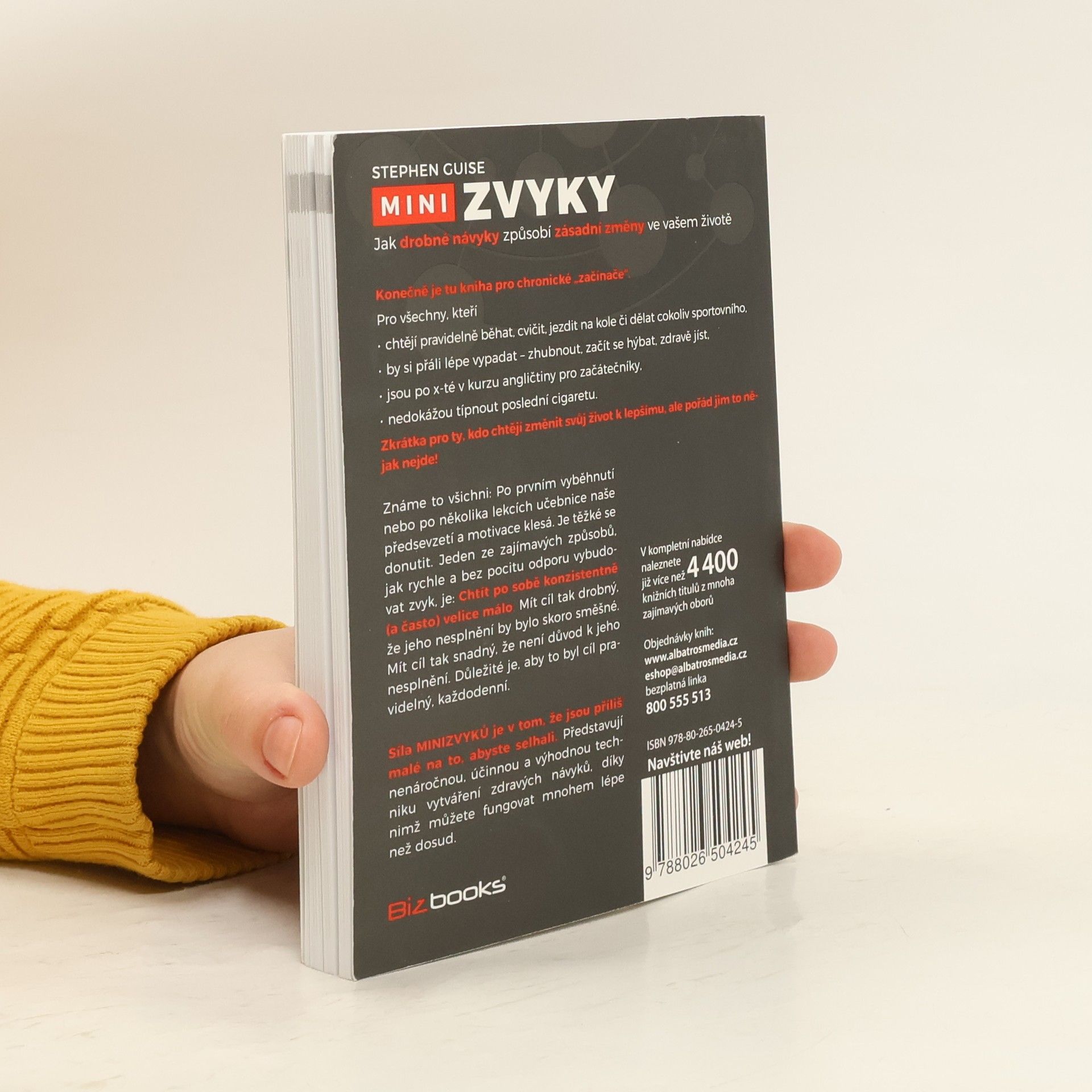 Konečně je tu kniha pro chronické „začínače“! Pro všechny, kdo chtějí pravidelně běhat, cvičit, jezdit na kole či jinak sportovat, ale nedaří se jim tyto činnosti zařadit do života, zhubnout, zdravě jíst nebo se zbavit zlozvyků. Mnozí si myslí, že nemohou dosáhnout trvalých změn, protože selhávají. Problém spočívá v boji proti vlastnímu mozku. Je nutné naučit se hrát podle jeho pravidel a osvojit si techniky, které umožňují dosahovat skvělých výsledků bez pocitu viny a frustrace spojené s tradičními metodami jako „motivujte se“ nebo „prostě to udělejte“. Minizvyk představuje malou pozitivní činnost, kterou se zavážete vykonávat každý den. Tyto minizvyky jsou „příliš malé na to, abyste selhali“, a představují účinnou techniku pro vytváření zdravých návyků. Cílem této knihy je pomoci vám trvale přidávat nové zdravé návyky do života. V prvních třech částech se dozvíte o tvorbě návyků, mozku, síle vůle a motivaci. Další části se zaměřují na logické a vědecké závěry, jak tyto informace efektivně využít, a poslední části vám ukáží, jak to můžete aplikovat sami.