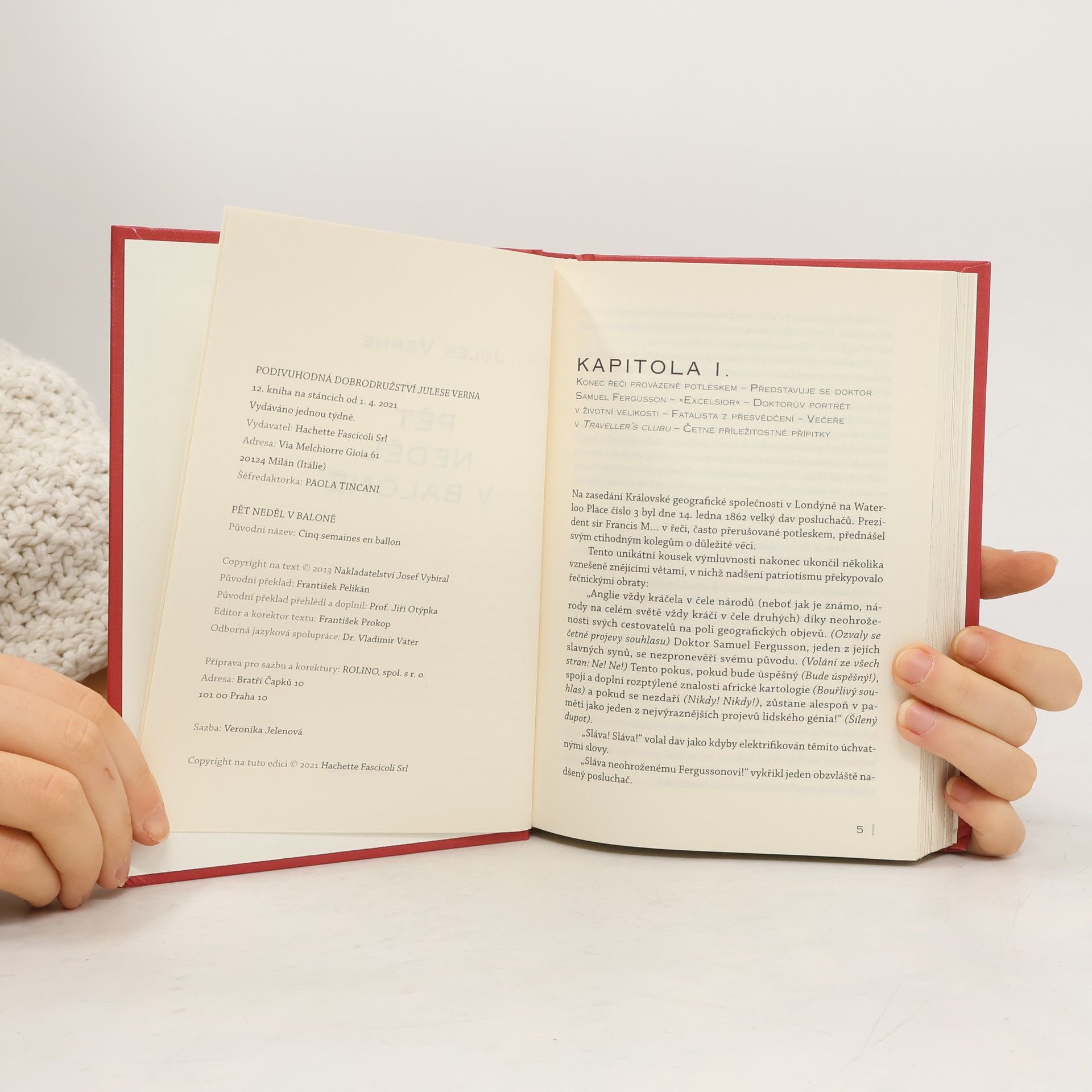 Naps. dle zápisek doktora Fergussona První román cyklu Podivuhodné cesty vypráví o dobrodružné výpravě doktora Fergussona, který se svým přítelem Richardem Kennedym a sluhou Joem Wilsonem podnikli výzkumnou cestu řiditelným balónem Viktoria (balón byl vybaven zařízením umožňujícím libovolný vzestup a sestup, a tak mohl vzduchoplavec využívat větrů vanoucích v různých výškách rozdílným směrem) nad pevninou tehdy ještě neprobádané Afriky. Po startu ze Zanzibaru prožili mnohá dobrodružství s africkým obyvatelstvem, bojovali se zvířaty i s přírodními živly, prozkoumali prameny Nilu a překonávali různé obtíže a nebezpečí.