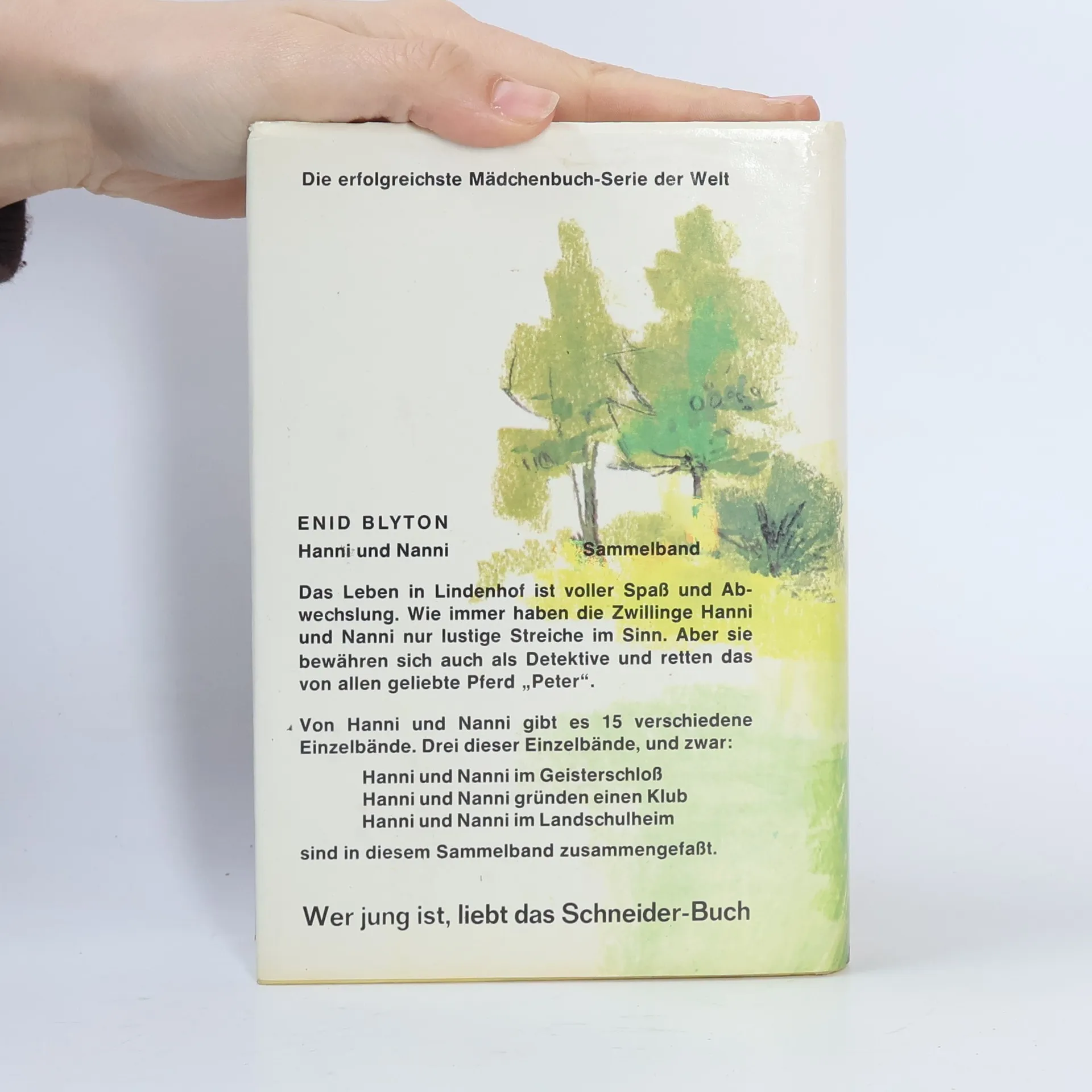 Das Leben im Internat Lindenhof ist voller Spaß und Abwechslung. Wie immer haben die Zwillinge Hanni und Nanni nur lustige Streiche im Sinn. Aber sie bewähren sich auc als Detektive und retten das von allen geliebte Pferd Peter. Hanni und Nanni im Geisterschloß (Band 6) Hanni und Nanni gründen einen Klub (Band 14) Hanni und Nanni im Landschulheim (Band 15)