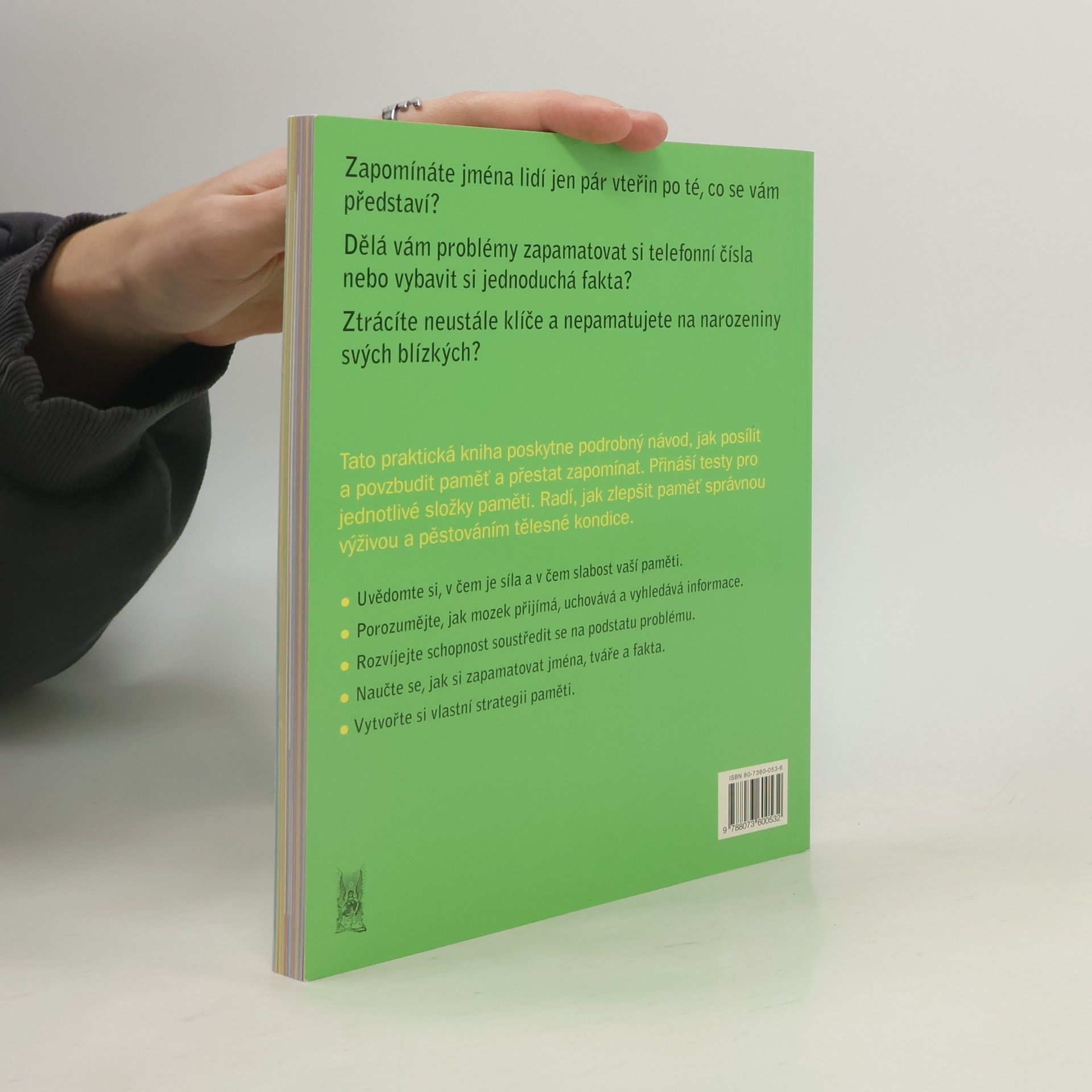 10 kroků k posílení paměti Vytvořte si vlastní strategii paměti Tato praktická kniha poskytne podrobný návod, jak posílit a povzbudit paměť a přestat zapomínat. Přináší testy pro jednotlivé složky paměti. Radí, jak zlepšit paměť správnou výživou a pěstováním tělesné kondice. Naučíte se, zapamatovat si jména, tváře, fakta a další užitečné triky.