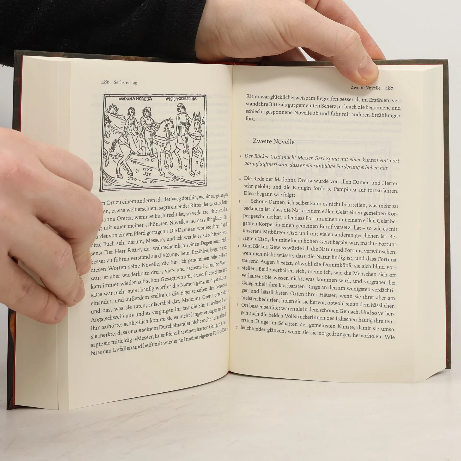 Was für Geschichten! Derb, tragisch, komisch, erotisch. Sieben junge Frauen und drei junge Männer, die vor der Pest in Florenz in ein Landhaus geflohen sind, erzählen sie sich, um sich die Zeit zu vertreiben – zehn an jedem Tag, einhundert insgesamt. Generationen von Lesern haben diese Geschichten unterhalten, Generationen von Novellisten wurden sie zum Vorbild. Der Boccaccio-Spezialist Peter Brockmeier hat die Novellen 2012 für die Ausgabe in der Reclam Bibliothek neu übersetzt und einen ausführlichen Kommentar dazu verfasst, der Quellen und Nachwirkung beschreibt, Anspielungen erhellt und die historischen Hintergründe erläutert. Illustriert ist der Band mit den Holzschnitten der venezianischen Ausgabe von 1492.
