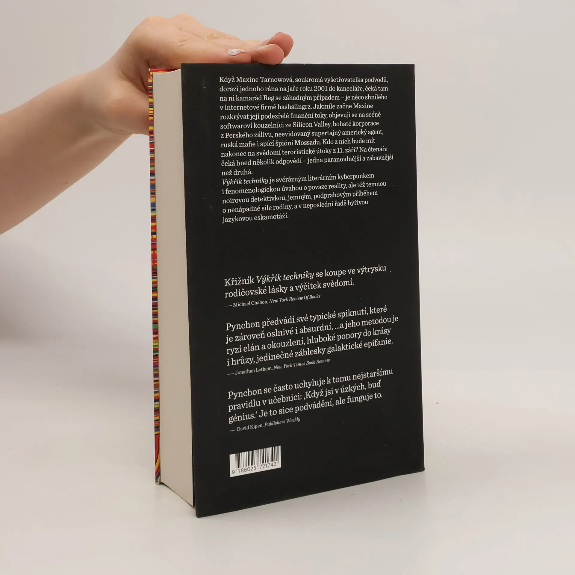 Výkřik techniky (Bleeding Edge) – Thomas Pynchon Je jaro roku 2001, v New Yorku rozkvétají hrušně a Maxine Tarnowová, forenzní auditorka, vede své dva syny do školy. Když dorazí do kanceláře, čeká tam na ni kamarád Reg se záhadným případem – je něco shnilého v internetové firmě hashslingrz. Jakmile začne Maxine rozkrývat její podezřelé finanční toky, objevují se na scéně softwaroví kouzelníci ze Silicon Valley, bohaté korporace z Perského zálivu, neevidovaný supertajný agent CIA, ruská mafie i Mossad. Kdo z nich bude mít nakonec na svědomí teroristické útoky z 11. září? Výkřik techniky dává čtenáři na tuto otázku několik odpovědí – jednu paranoidnější a zábavnější než druhou. Výkřik techniky je nejen svérázným literárním kyberpunkem a fenomenologickou úvahou nad povahou reality, ale též temnou noirovou detektivkou, jemným, podprahovým příběhem o nenápadné síle rodiny a v neposlední řadě jazykovou eskamotáží hýřící monstrózně širokou slovní zásobou a obskurní terminologií z nejpodivnějších oborů lidské činnosti – ať už jde o kodérství, hacking, gaming, investiční bankovnictví, komoditní burziánství, forenzní audit, či o slang vojenský, špionážní a policejní, kulinářský, voňavkářský nebo mixologický.