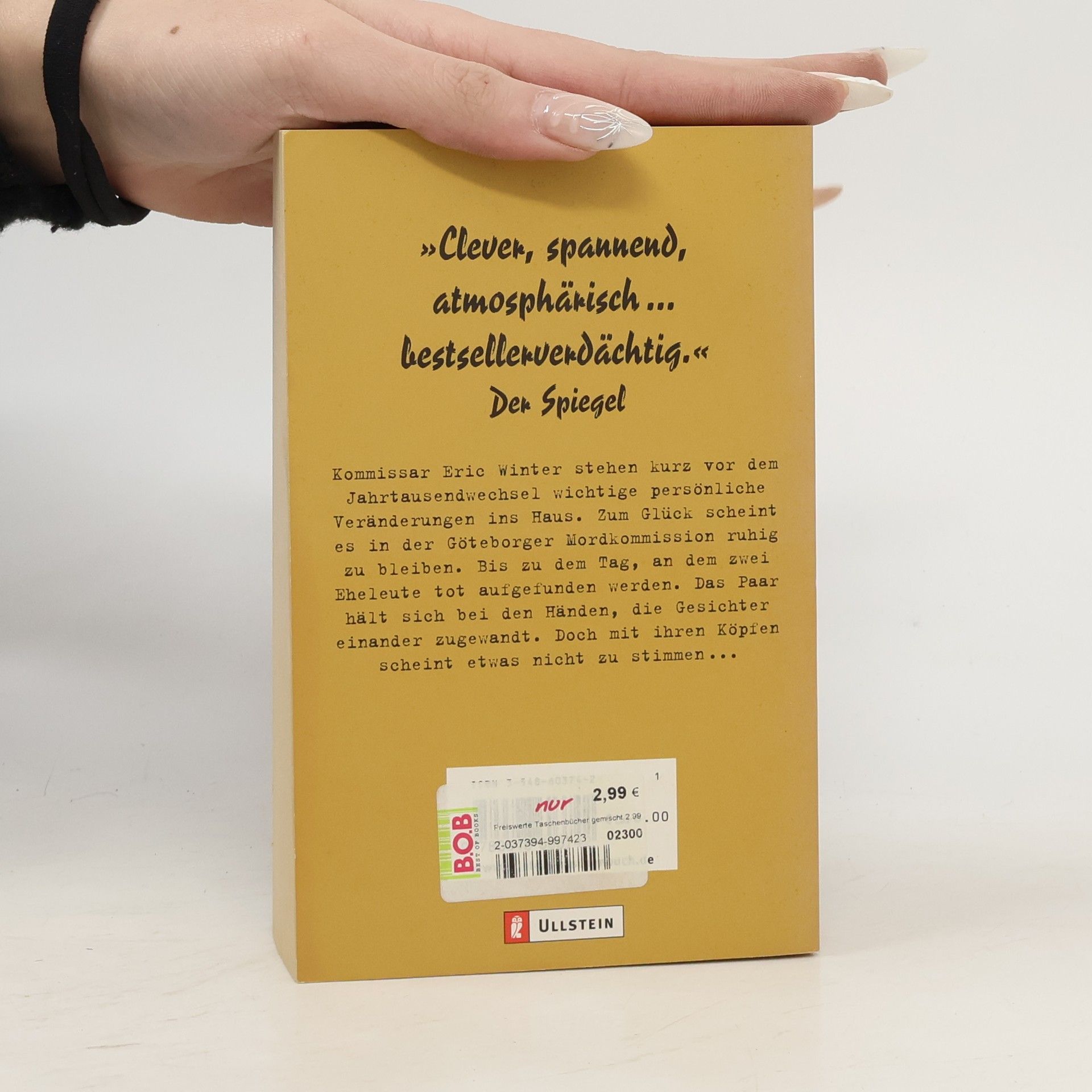 Kommissar Eric Winter stehen kurz vor dem Jahrtausendwechsel wichtige persönliche Veränderungen ins Haus. Zum Glück scheint es in der Göteborger Mordkommission ruhig zu bleiben. Bis zu dem Tag, an dem zwei Eheleute tot aufgefunden werden. Das Paar hält sich bei den Händen, die Gesichter einander zugewandt. Doch mit ihren Köpfen scheint etwas nicht zu stimmen. Subtil, suggestiv und stilsicher geschrieben. Erneut beweist Åke Edwardson, dass seine Romane das Zeug haben, Krimi-Klassiker zu werden.